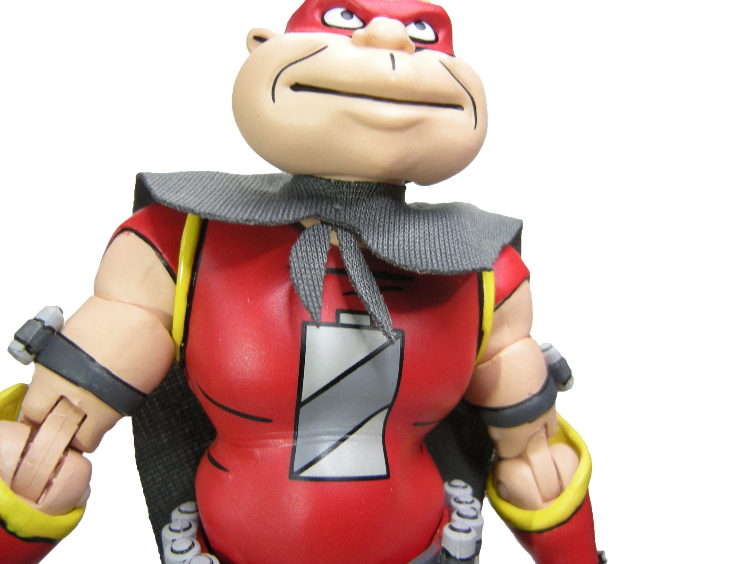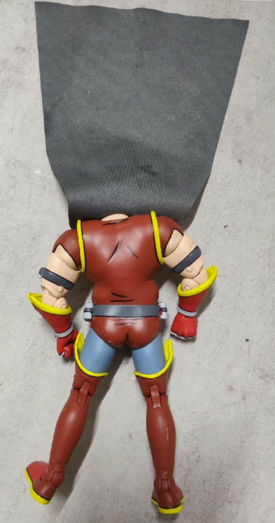 Enfin, notre grand méchant dispose d’une cape. Celle-ci peut être retirée lorsque vous changez de tête. Fabriquée par Nicole Falk, elle est pour le moins terriblement simpliste. J’ai déjà beaucoup critiqué son travail ces derniers mois, que ce soit pour les Turtles in disguise ou pour le Splinter de Mirage. La cape manque cruellement de reliefs. Une texture comme celle de la cape de Shredder aurait été largement préférable. Elle fait très synthétique. Trop petite, la forme qui lui est donnée ici est très artificielle, notamment au niveau du nœud d’attache, qui n’est qu’une pièce découpée et collée au niveau du col. Nicole Falk est l’épouse de Randy Falk, directeur général du développement chez NECA. Tirez-en vos conclusions…