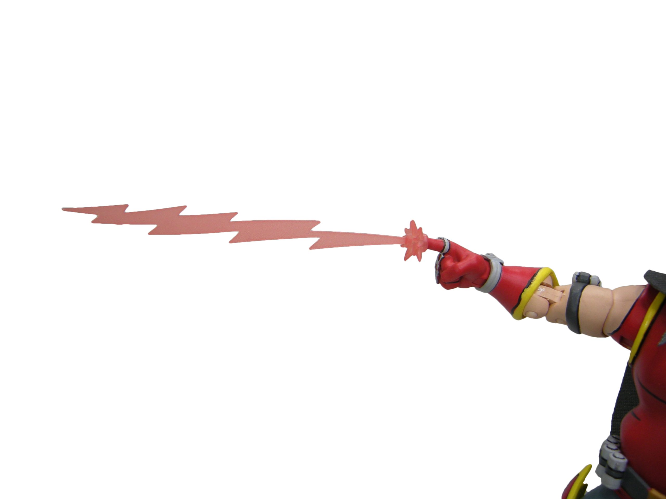 Ces effets lumineux, au nombre de cinq, sont tous faits pour être fixés d’une manière ou d’une autre sur les mains d’Electrozapper. Le plus long est à fixer au poing fermé droit, grâce à un petit peg. Plutôt long, et donc lourd, il tient relativement mal. Vous pouvez un petit peu forcer pour séparer la base du rayon de l’éclair généré. Cela permettra de ne garder que la base sur le poing, faisant un accessoire de plus.