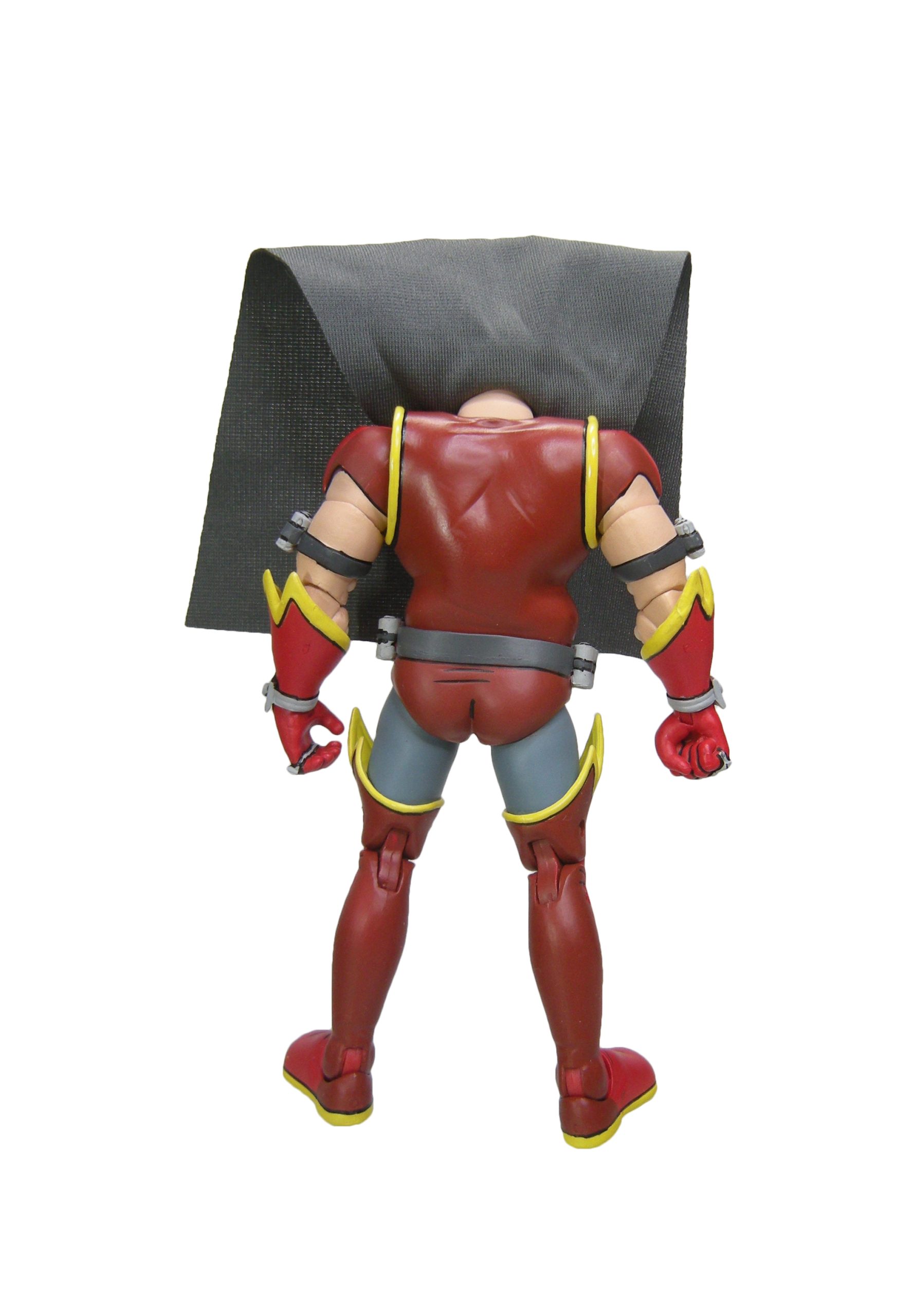 La figurine propose de nombreuses articulations. Dans l’ensemble, c’est très bon. Double articulation au niveau des coudes et des genoux. Le seul point réellement absent se trouve au niveau de la poitrine. Seule une rotule au niveau du bassin permet de pencher la figurine. Cela permet de ne pas dénaturer le symbole sur la poitrine de notre vilain et de faire de son torse une seule et unique pièce.