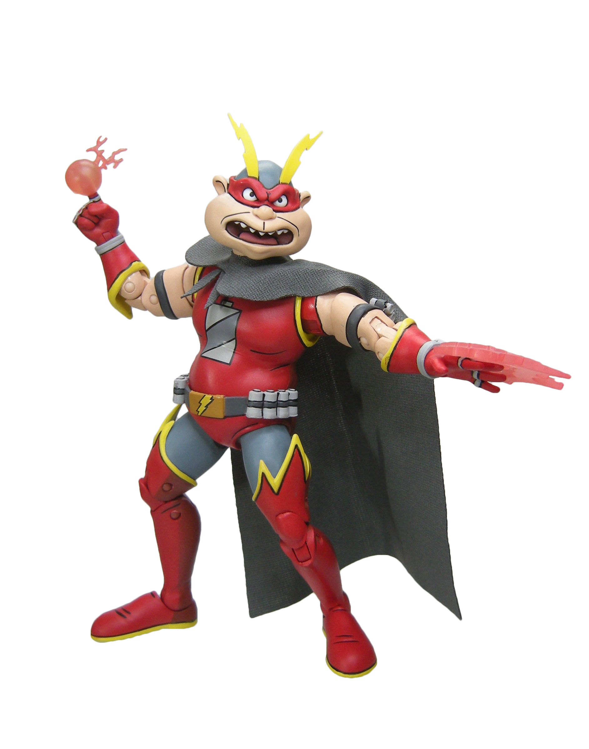 La figurine d’Electrozapper a été annoncée très tardivement. Vendue en double-pack avec Bugman, ce dernier était présenté à la Comic Con de San Diego, en juillet 2022.