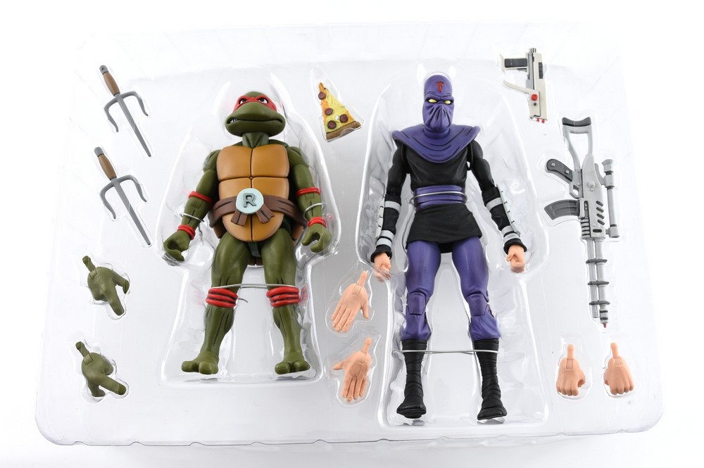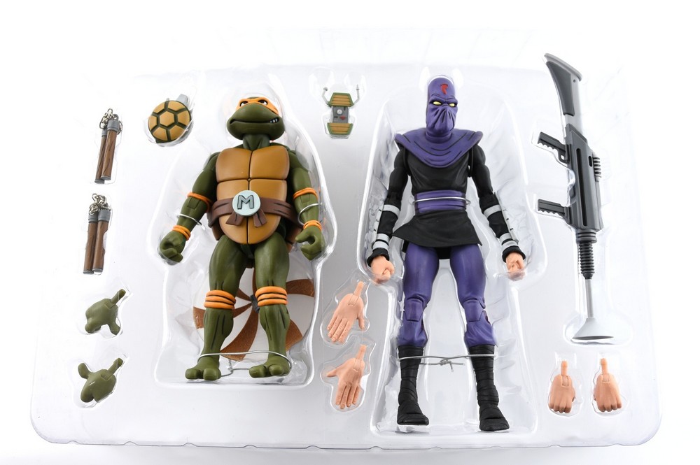 Afin de favoriser des prix corrects pour ses figurines, NECA est un grand spécialiste dans la réutilisation de ses moules pour de nombreux personnages. Ainsi, le ninja Foot du comic de 1984 vit le jour à l’occasion d’un pack destiné au New York Comic Con 2016. Il fut également utilisé pour le Foot soldier de la série Arcade game, sorti en exclusivité pour le San Diego Comic Con de la même année.