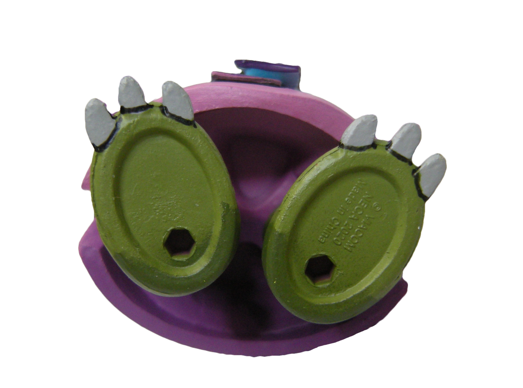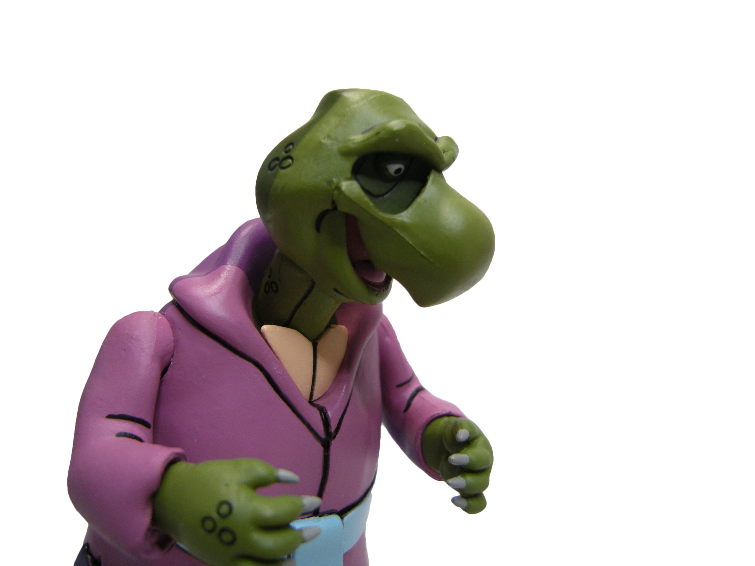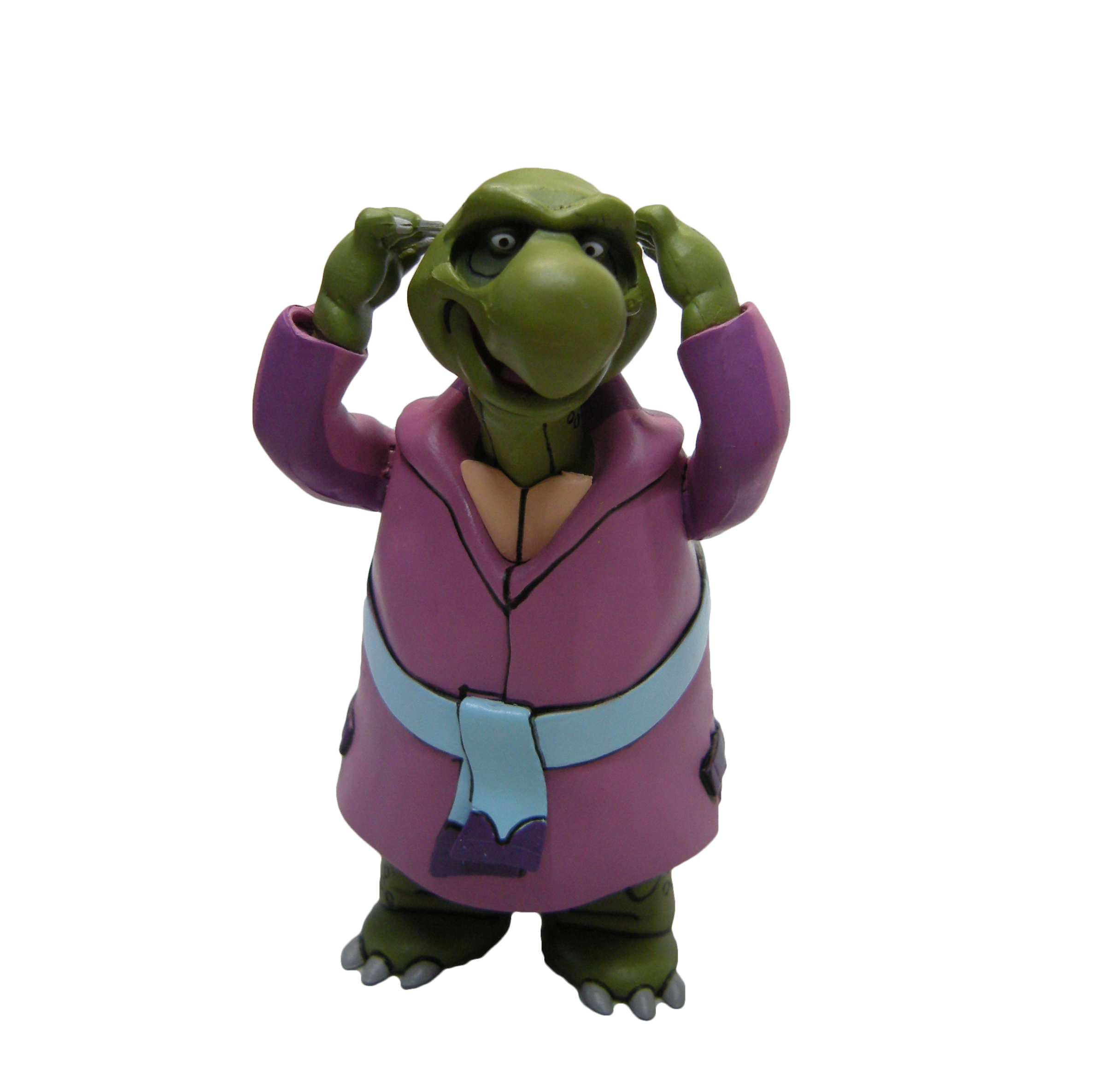 L’ensemble de la sculpture de Kerma est très fidèle au personnage. Nous retrouvons ce visage typique, rappelant une tortue assez âgée, avec ses yeux très creux ou encore ces petites griffes. Il respire la lenteur, comme dans le dessin animé ! Ses mains sont pourvues de petites griffes acérées.
