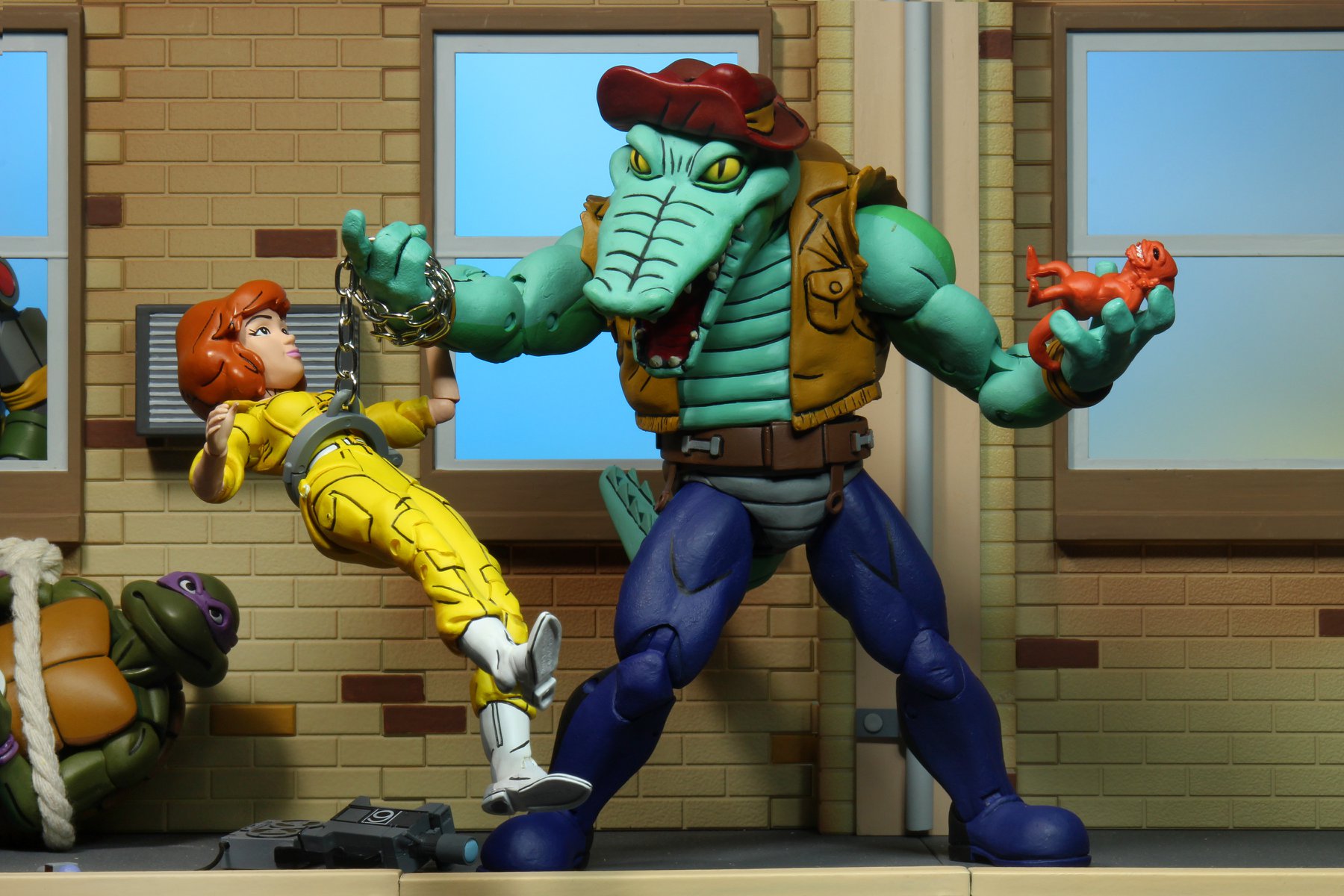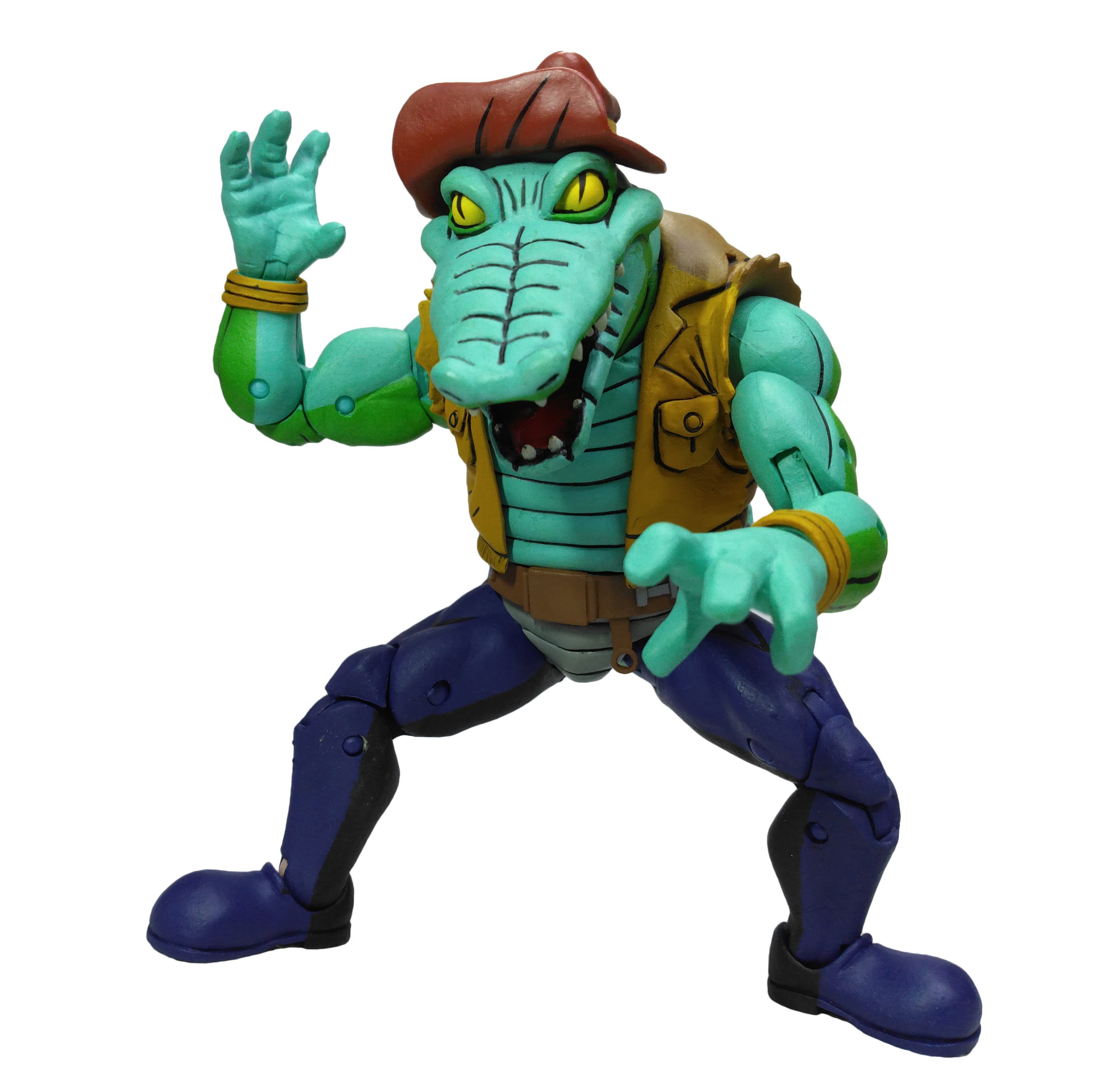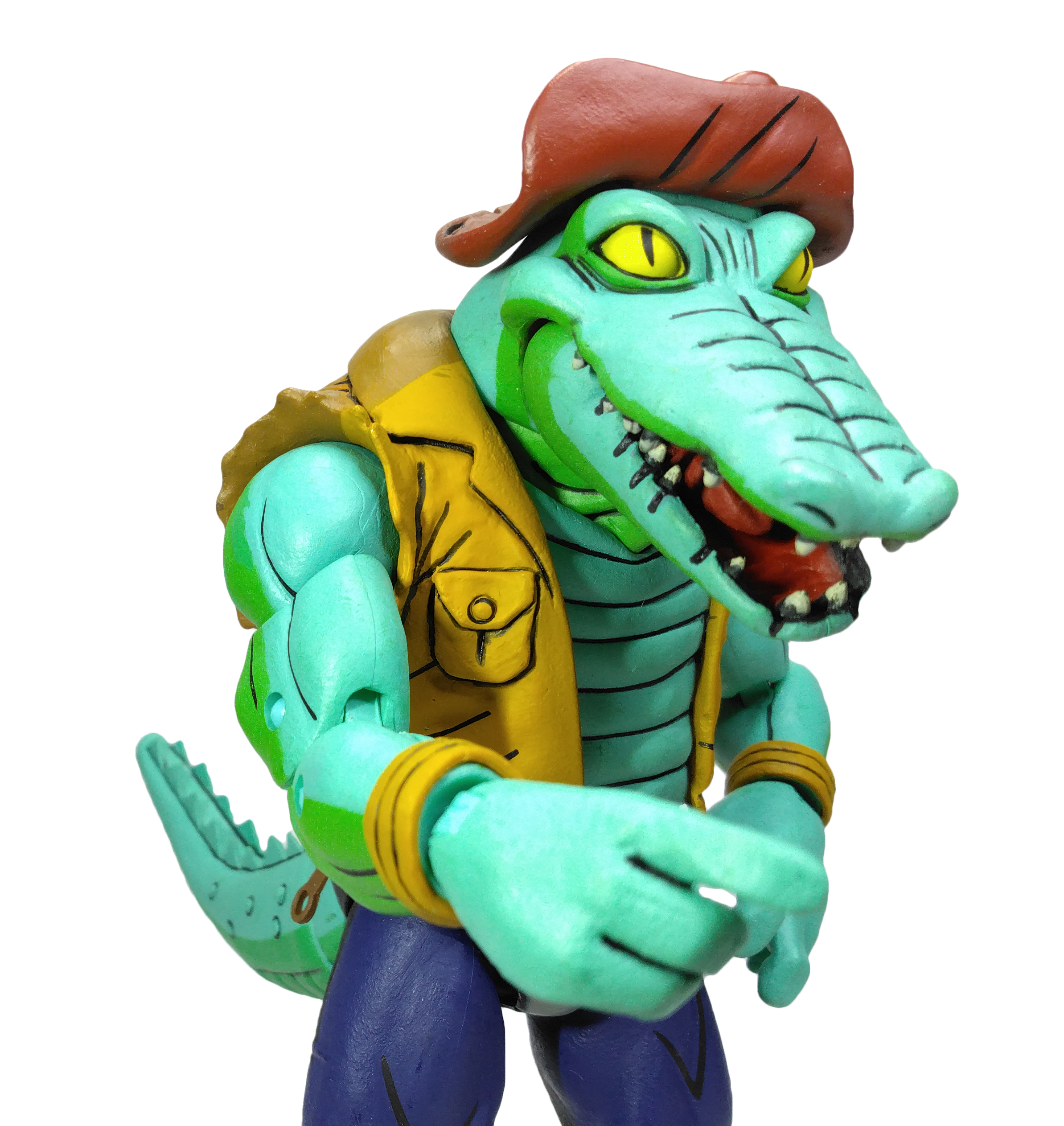 La version représentée par NECA est bien l’alligator de l’épisode La terreur du marais (S3 E30). Tant la sculpture que les couleurs employées proviennent de cet épisode. Dans le suivant, Rencontre avec le Roi des rats (S3 E36), le reptile disposait d’un pantalon noir.