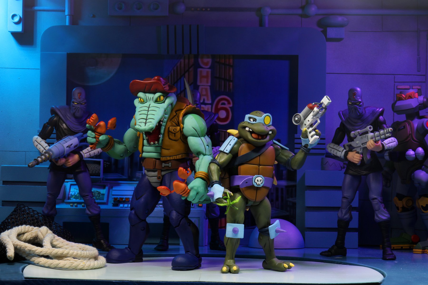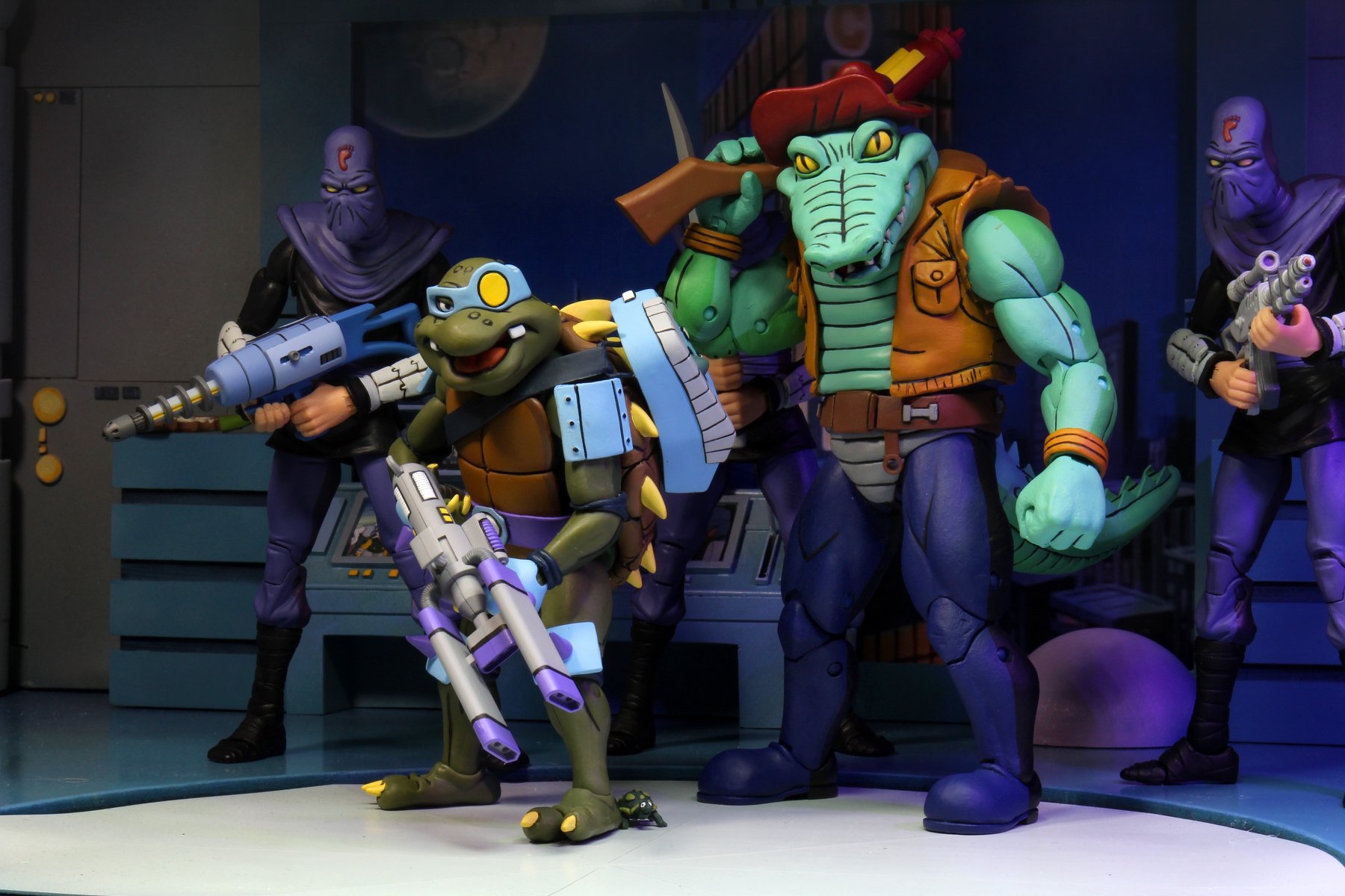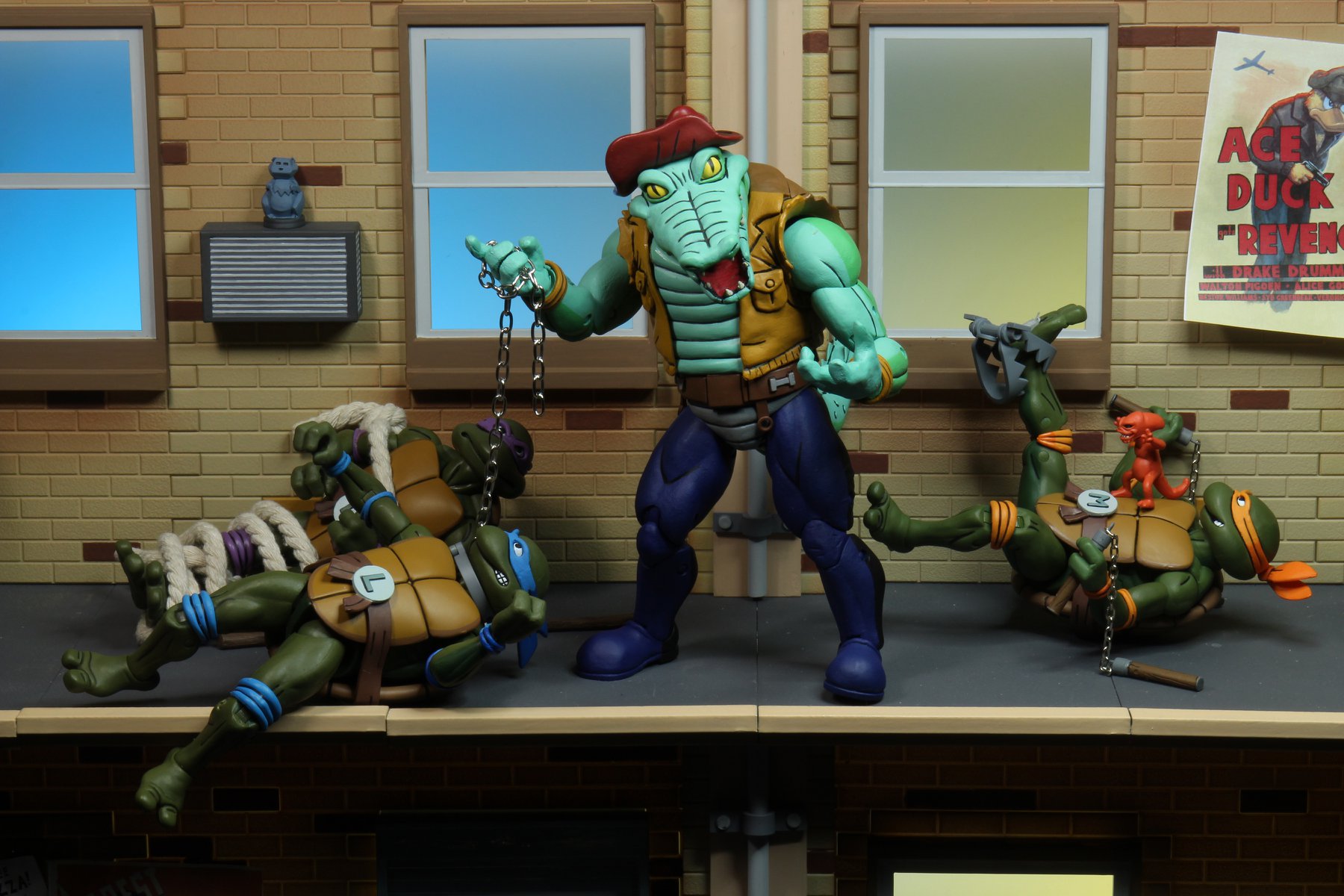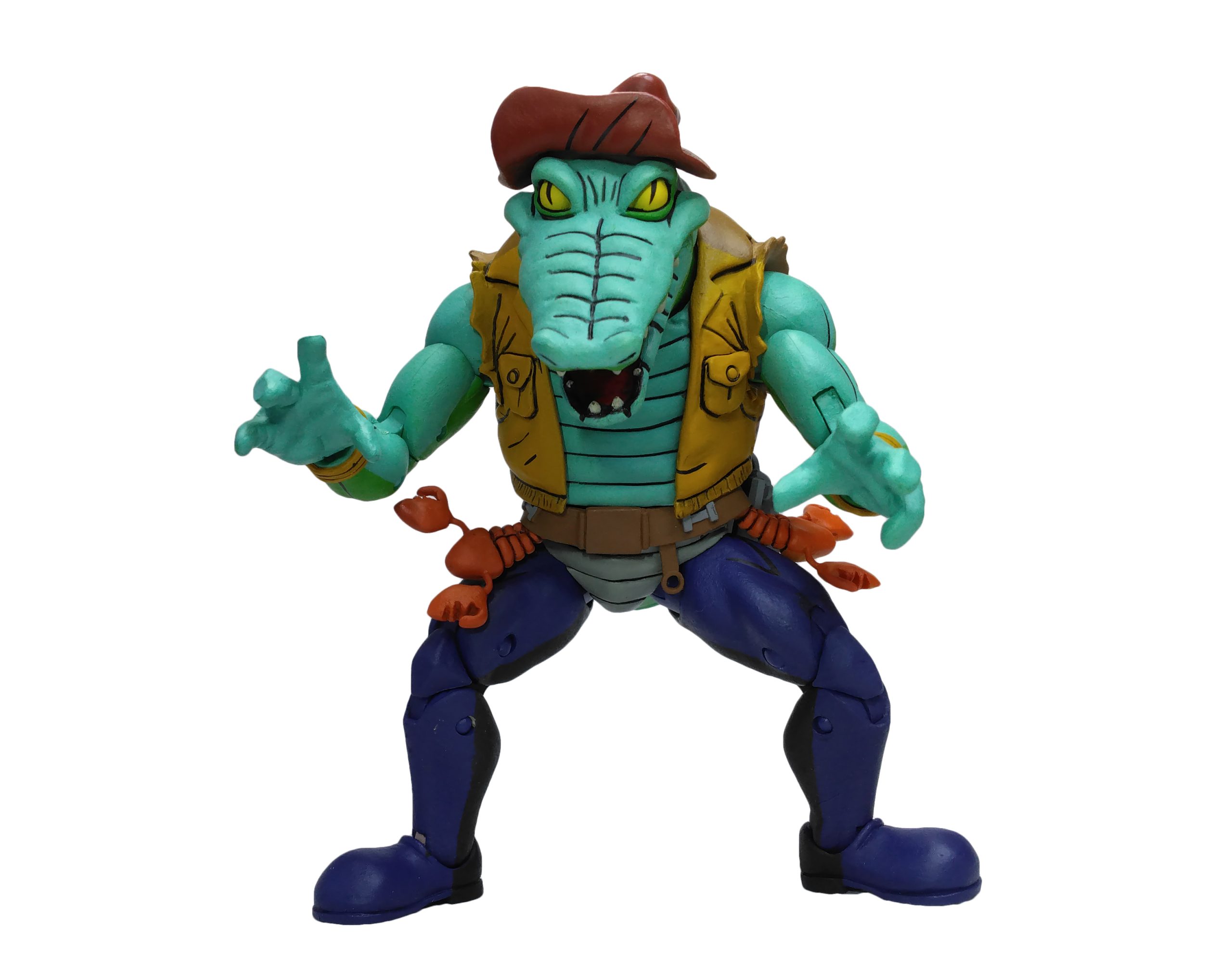 La version représentée par NECA est bien l’alligator de l’épisode La terreur du marais (S3 E30). Tant la sculpture que les couleurs employées proviennent de cet épisode. Dans le suivant, Rencontre avec le Roi des rats (S3 E36), le reptile disposait d’un pantalon noir.