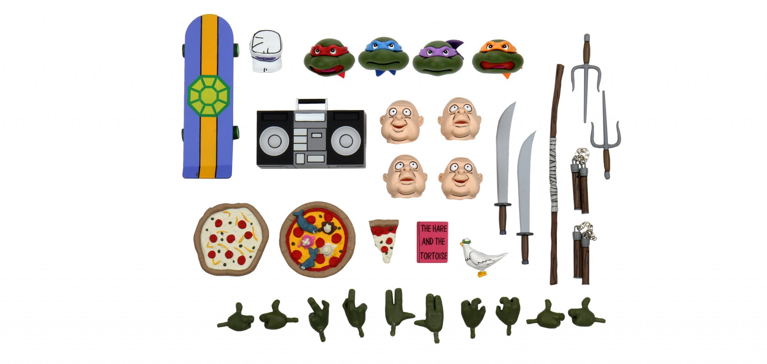 Le pack propose un très grand nombre d’accessoires, certains adaptés à toutes les tortues, sans distinctions, d’autres propres à un personnage spécifique.