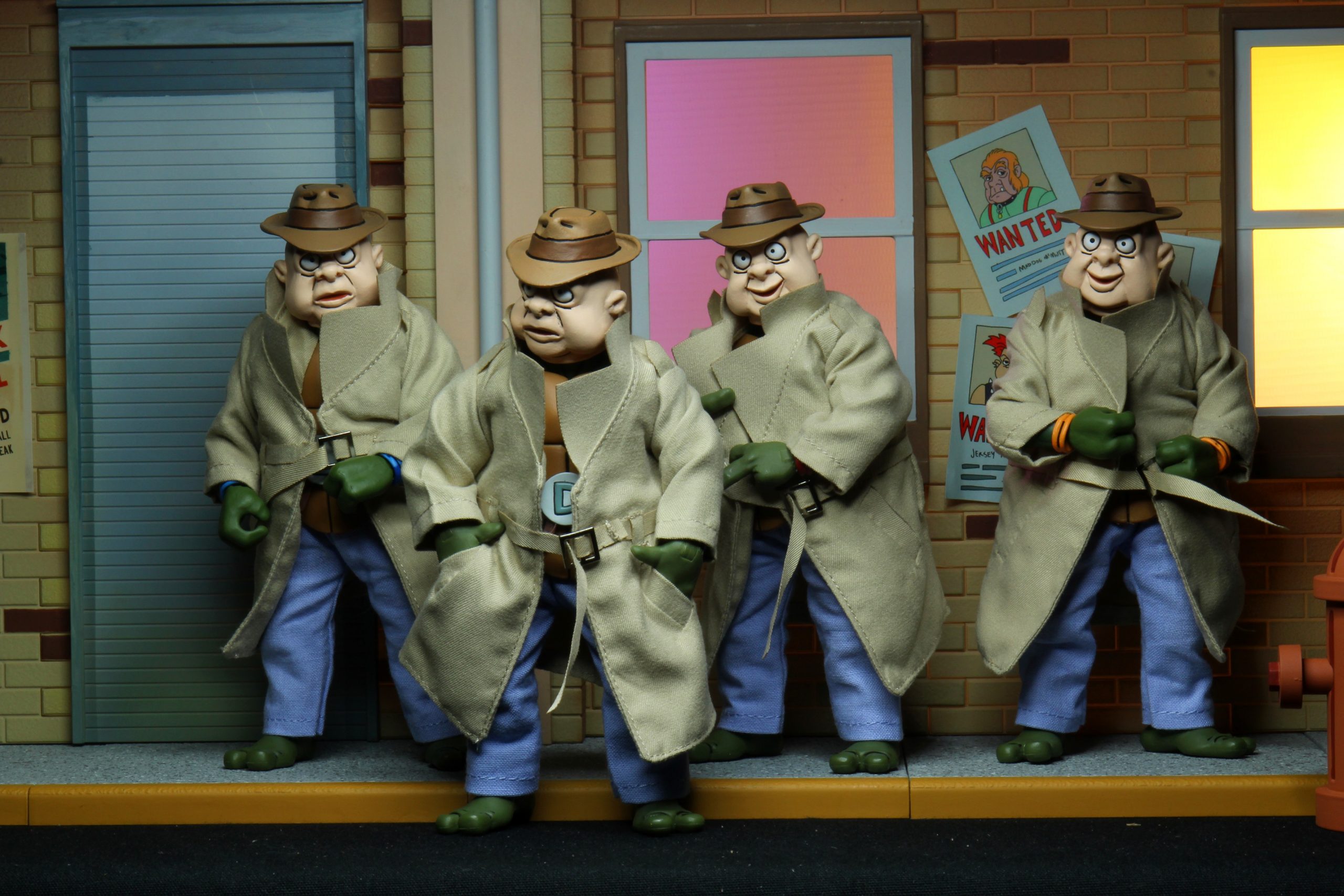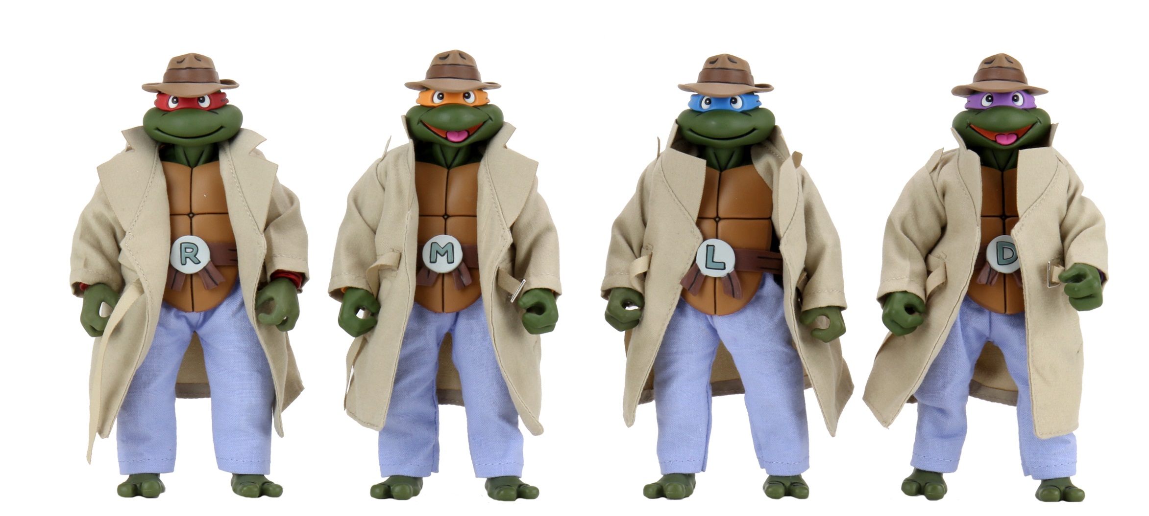Afin de ne pas sortir quatre tortues quasi-identiques à celles de 2017, NECA a réalisé un pack présentant les quatre frères et un certain nombre d’accessoires. Surtout les célèbres trench-coats, tant attendus par les fans.