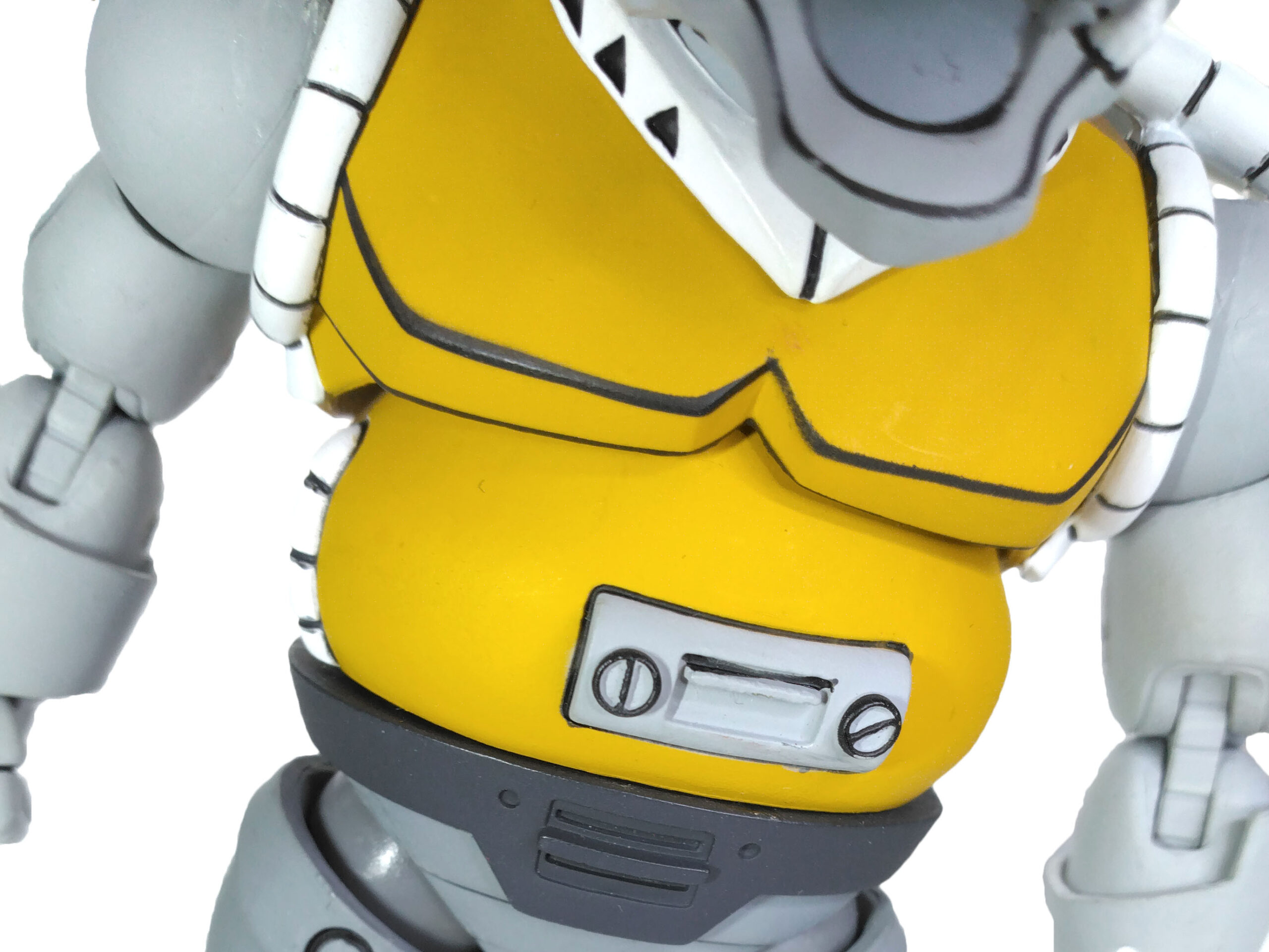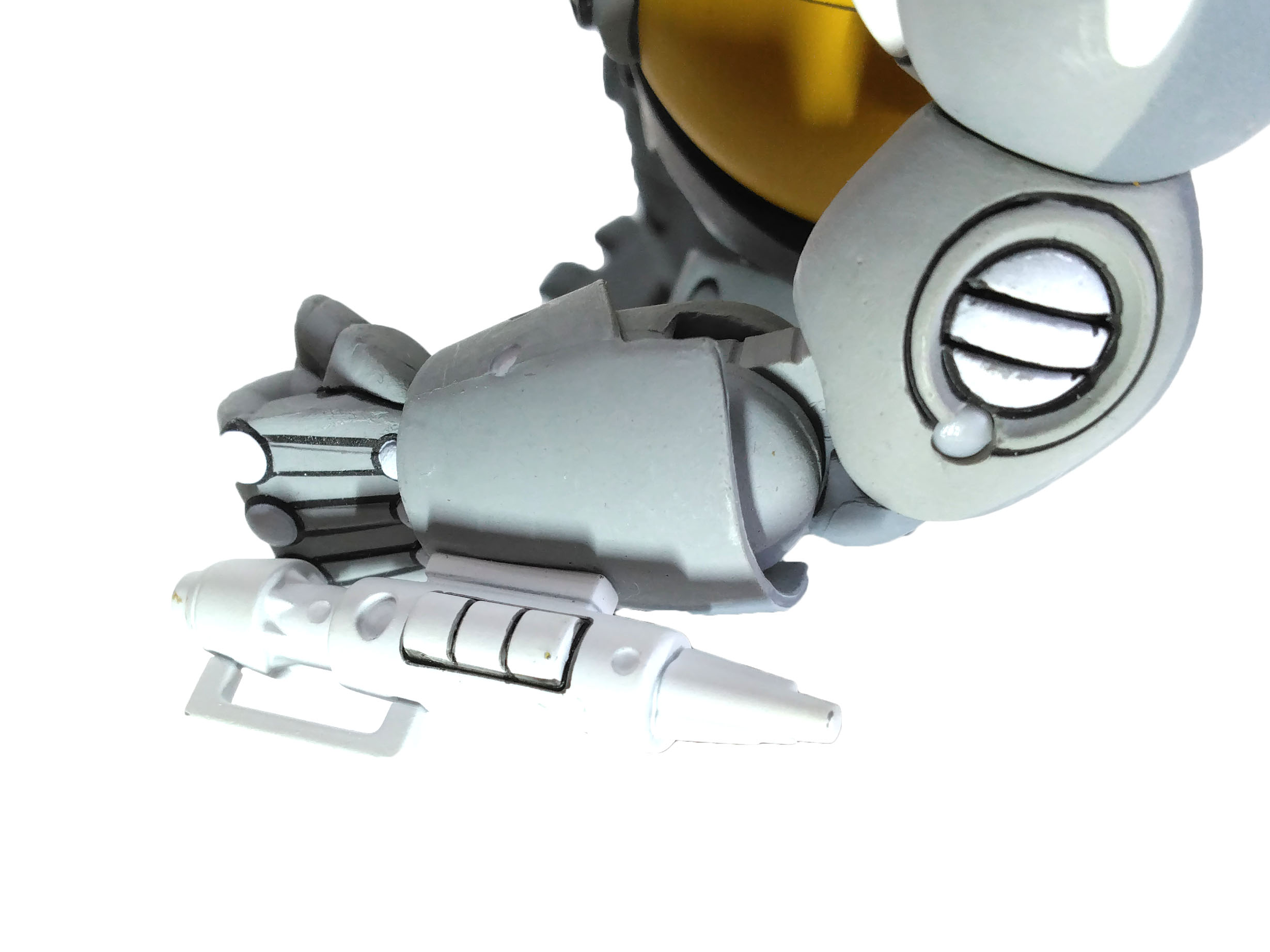 Pour le reste, la figurine est vraiment très bonne, truffée de détails. Le design du personnage propose de nombreux boulons ou éléments rappelant sa nature robotique. Le visage est excellent, avec de nombreux reliefs de superpositions de plaques pour donner une tête anguleuse. Les oreilles, très fines, sont gaufrées à l’intérieur.