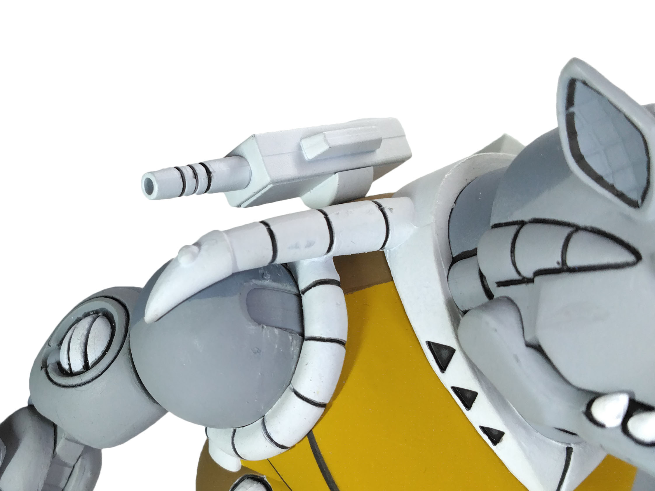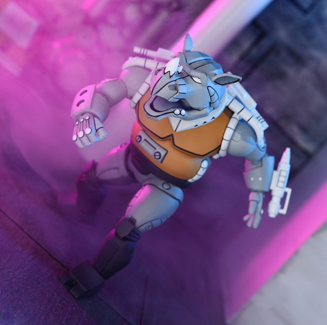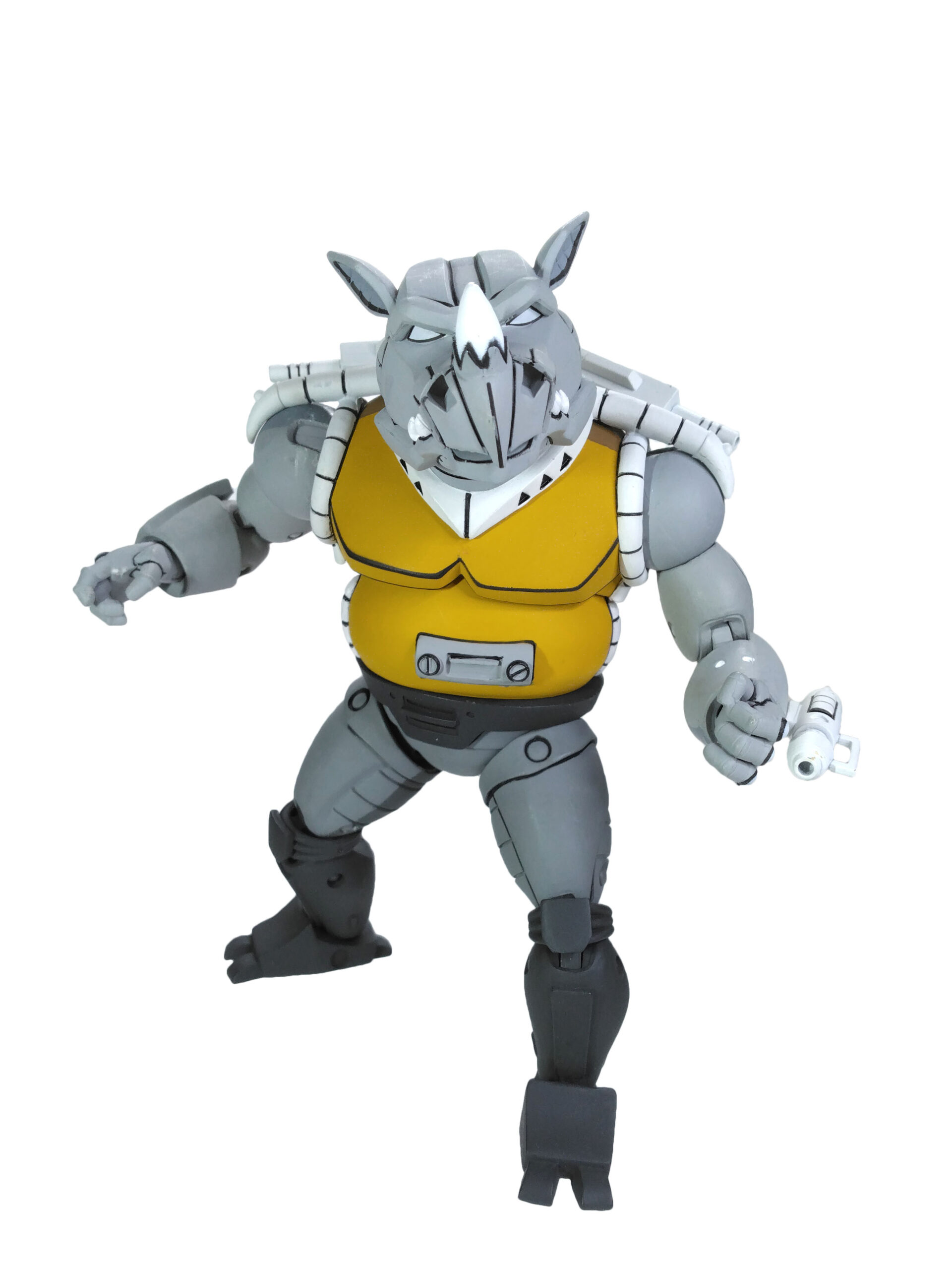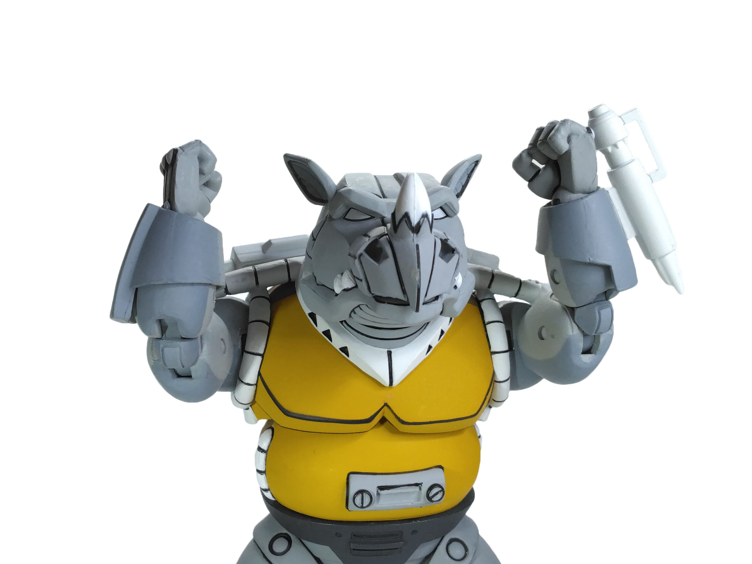 Cette version est naturellement bien plus fidèle à l’apparition du rhinocéros dans l’épisode Les super mutants (S3 E27) que le Robotic Rocksteady de 1993. Mighty Rocksteady est très détaillé avec de nombreux éléments rappelant son côté robotique, au niveau des bras, du torse, des jambes et surtout de la tête. Celle-ci est particulièrement détaillée. Les articulations et la peinture font honneur à cette sculpture.