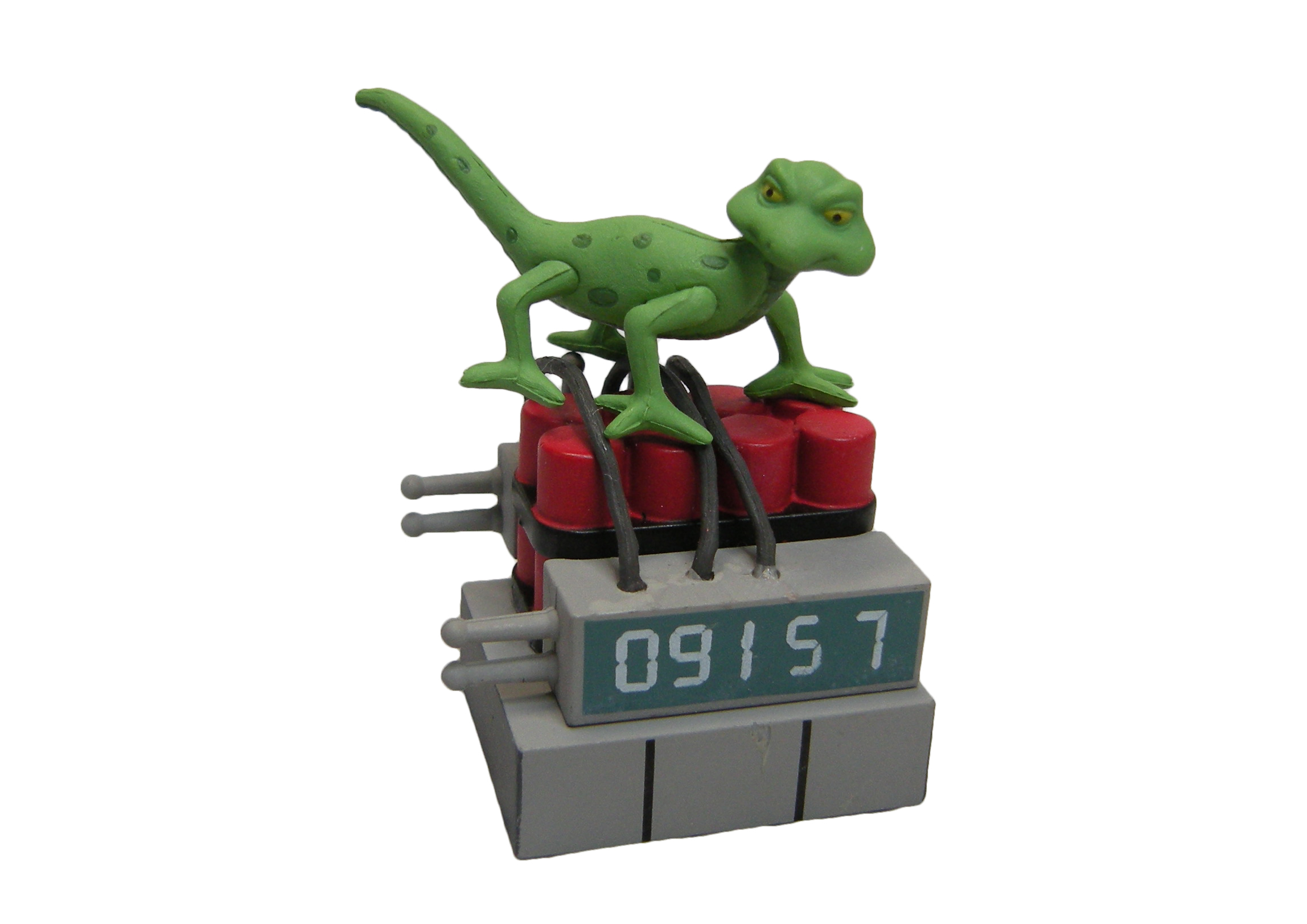 De l’épisode Donatello et le Gecko (S5 E4), nous retrouvons la bombe de Monsieur X. Tous les éléments sont sculptés à l’ordinateur, permettant une belle précision sur les finitions. La minuterie est imprimée directement sur le plastique. Attention, il ne reste plus que 9 minutes et 57 secondes ! Les petits câbles, en plastique souple, sont collés dans des petites perforations prévues pour les recevoir.