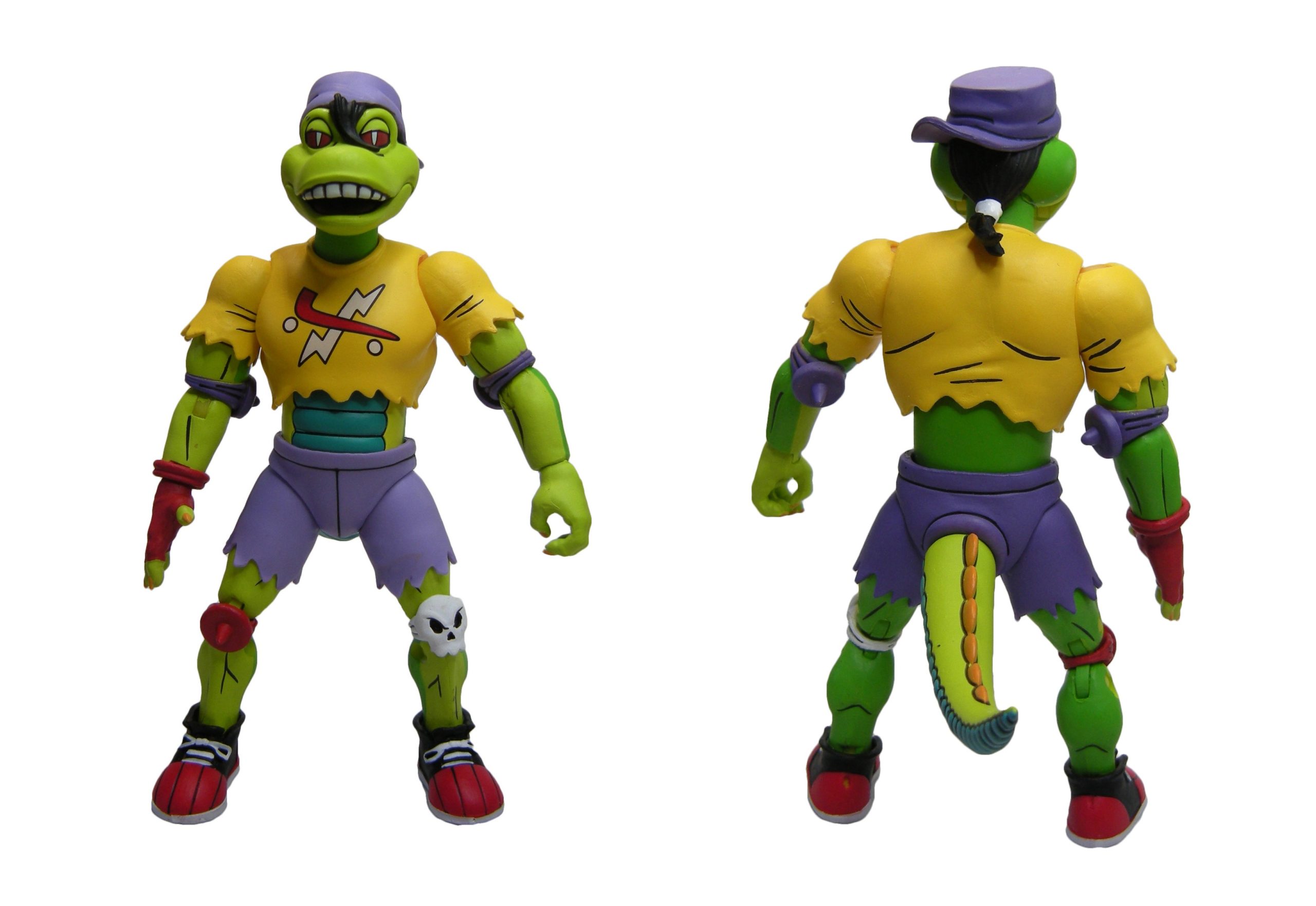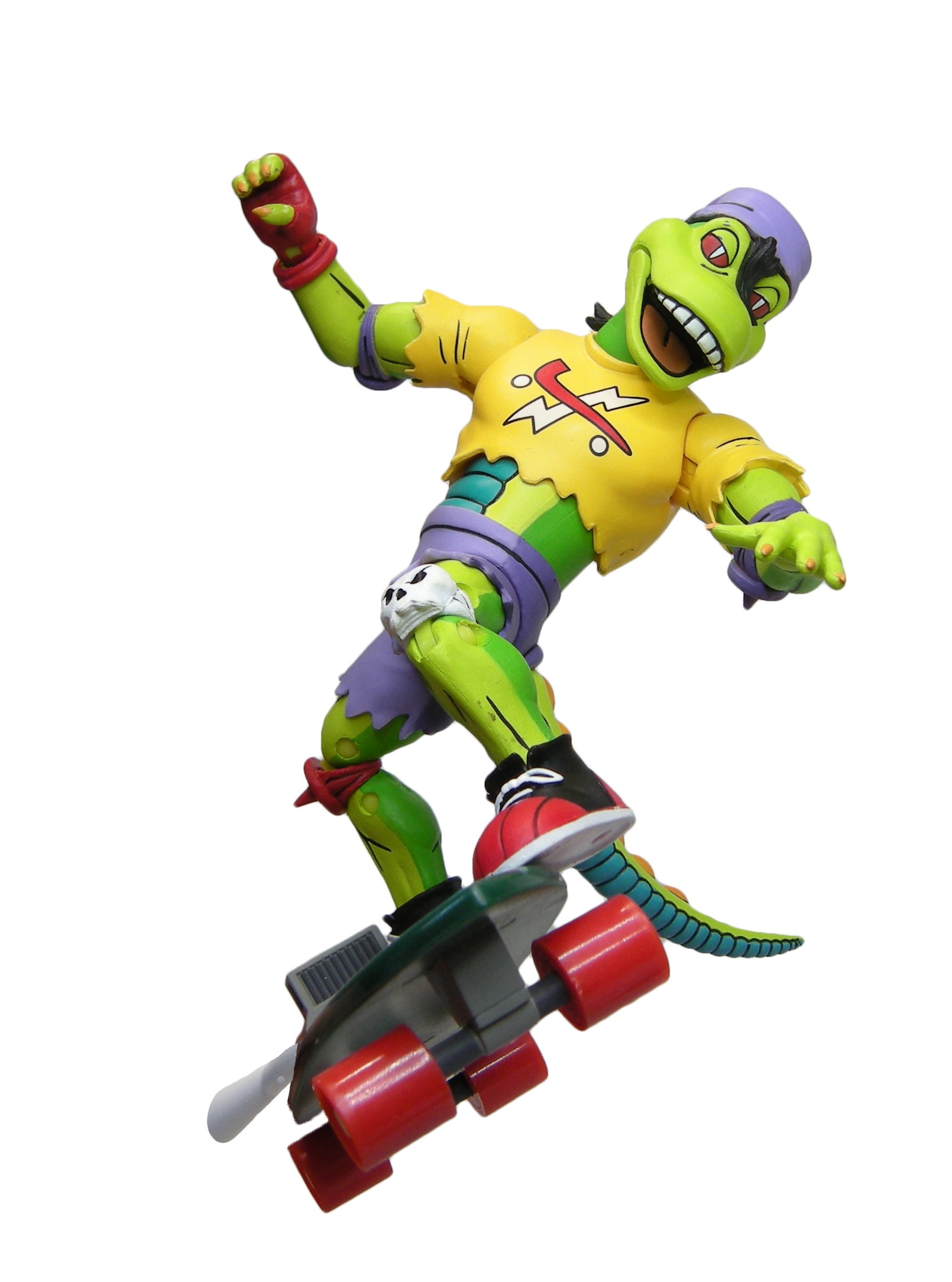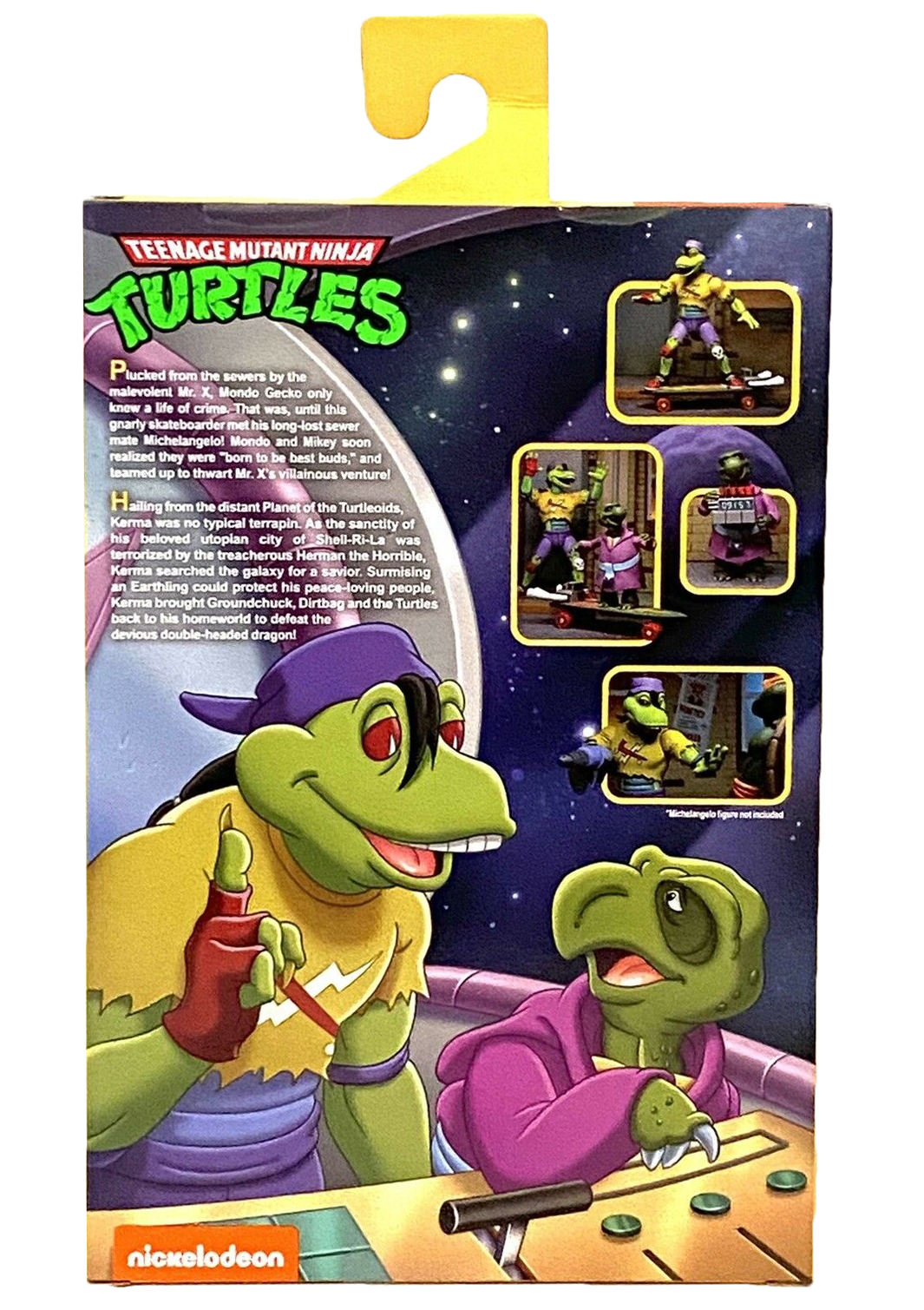 Initialement, la figurine de Mondo Gecko devait accompagner celle de Muckman dans un double-pack. Finalement, le tas d’ordures s’est retrouvé vendu à l’unité dans un pack Ultimate. Le destin de Gecko a été similaire, lui aussi vendu dans un pack Utimate, tout en étant accompagné de Kerma la tortue, considérée ici plutôt comme un accessoire, tout au plus un sidekick.