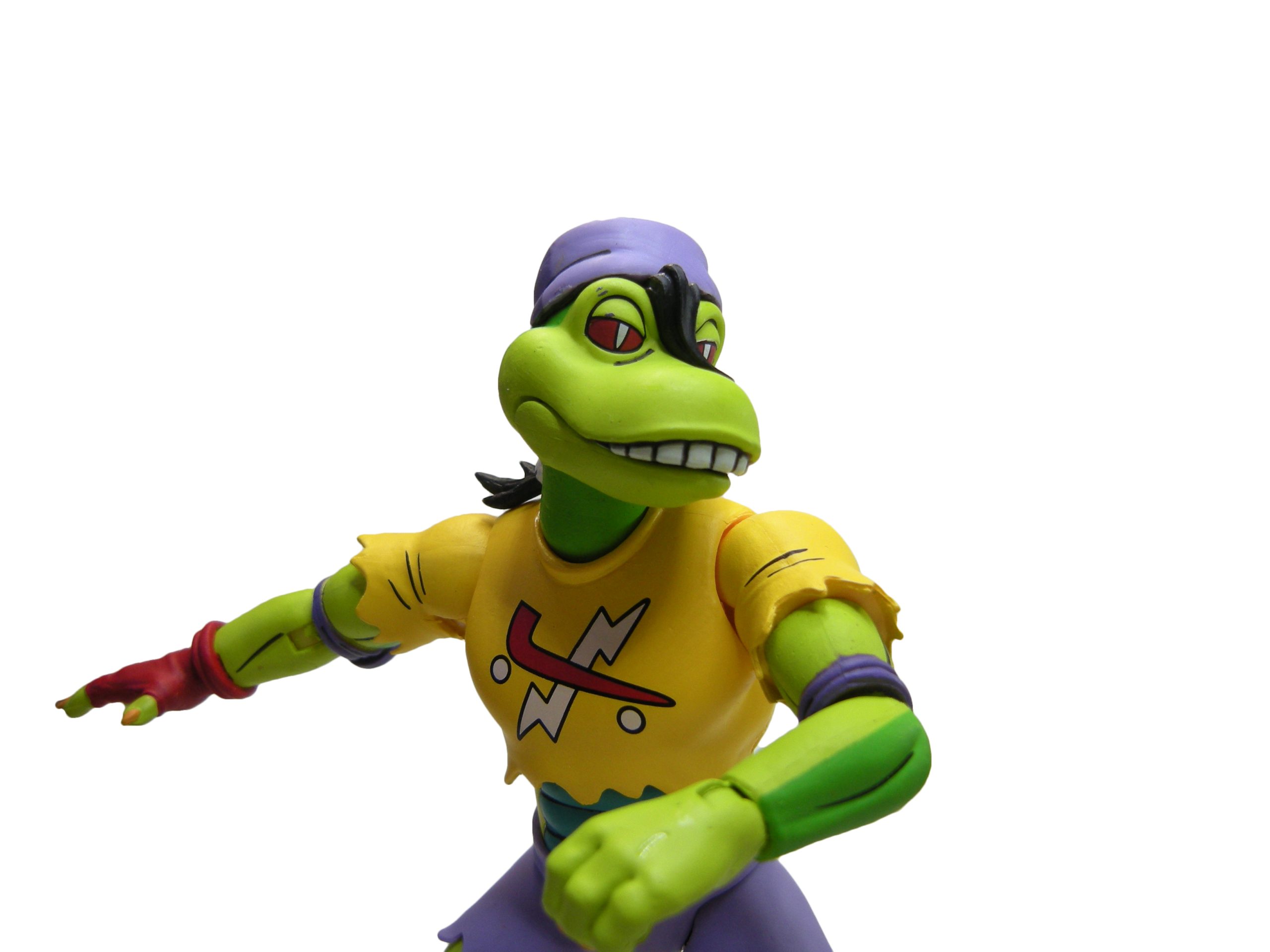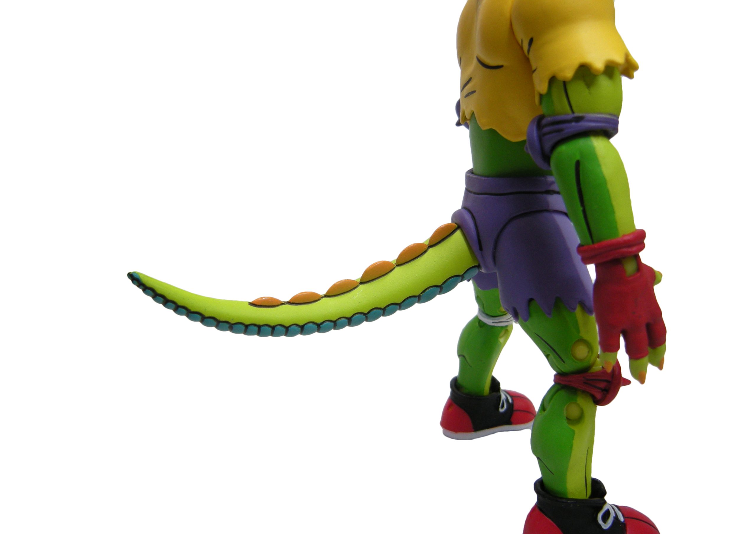 La sculpture de la figurine de Mondo Gecko est relativement bien réussie. Si lors de son annonce, les fans ont regrettés son aspect trop lisse, rappelons qu’il s’agit surtout d’une mauvaise habitude prise à cause de la figurine que Playmates Toys avait sorti en 1990. Le Mondo Gecko du dessin animé a bien une peau très lisse et un visage assez rond !