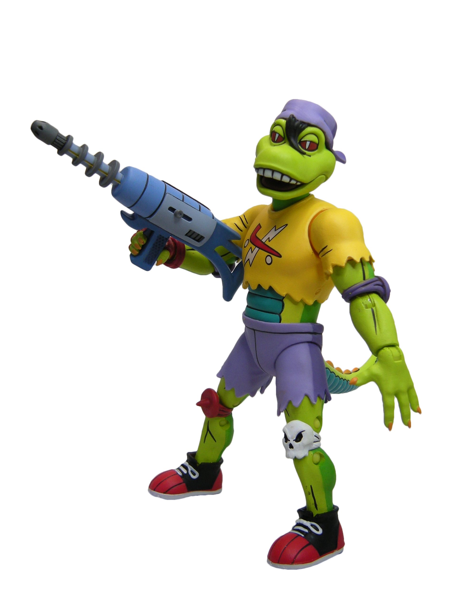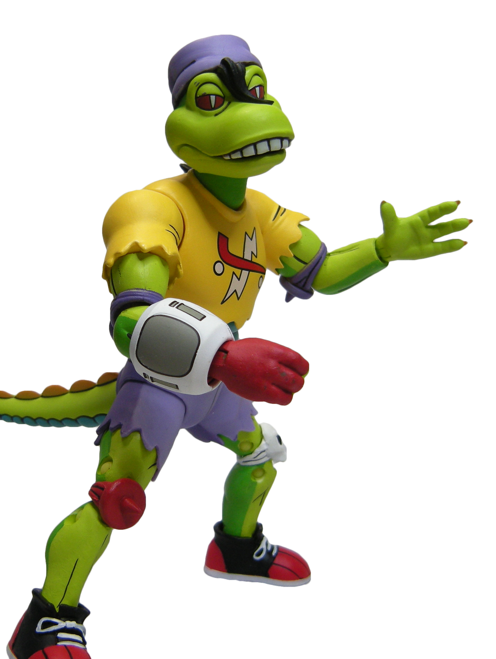 Le lézard dispose également de son fusil, avec lequel il menace à contre cœur Michaelangelo de se rendre à Monsieur X. L’arme est très fournie en détails. Mais la crosse est trop épaisse. Les petites mains du gecko n’arrivent pas facilement s’en saisir, principalement lorsqu’il est question de tenir l’arme à deux mains. A noter qu’il s’agit de la même arme que celle fournie avec le Bashed Foot soldier et le Slashed Foot soldier.