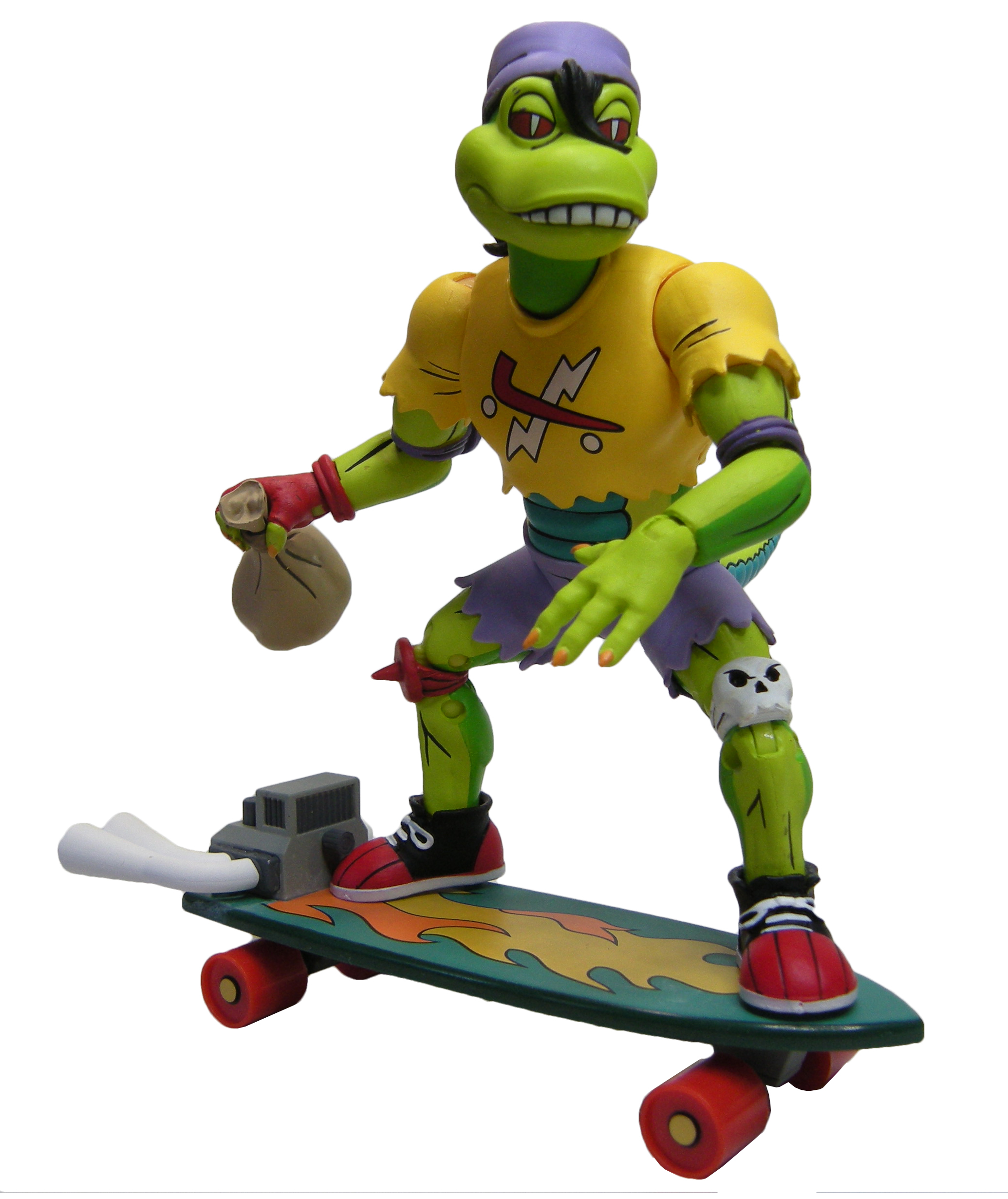 Qu’est-ce qu’un bon voleur sans son butin ? NECA a fourni à Mondo Gecko un sac d’argent qu’il venait de dérober avec ses acolytes. Enfin, nous retrouvons le bébé gecko, avant qu’il ne soit transformé en mutant, en provenance du rêve souvenir de Michaelangelo.