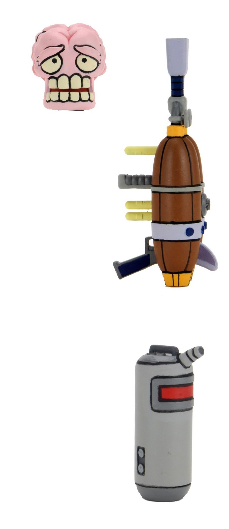 Le premier est le tube de Byndex-3, le bocal contenant le stabilisateur du mutagène de Shredder que Seymour doit dérober. L’objet est très fidèle au design de celui vu dans le dessin animé. En revanche, le nom du produit n’est pas inscrit dessus. C’est dommage lorsque l’on connait la précision d’impression dont NECA a déjà fait preuve par le passé.
