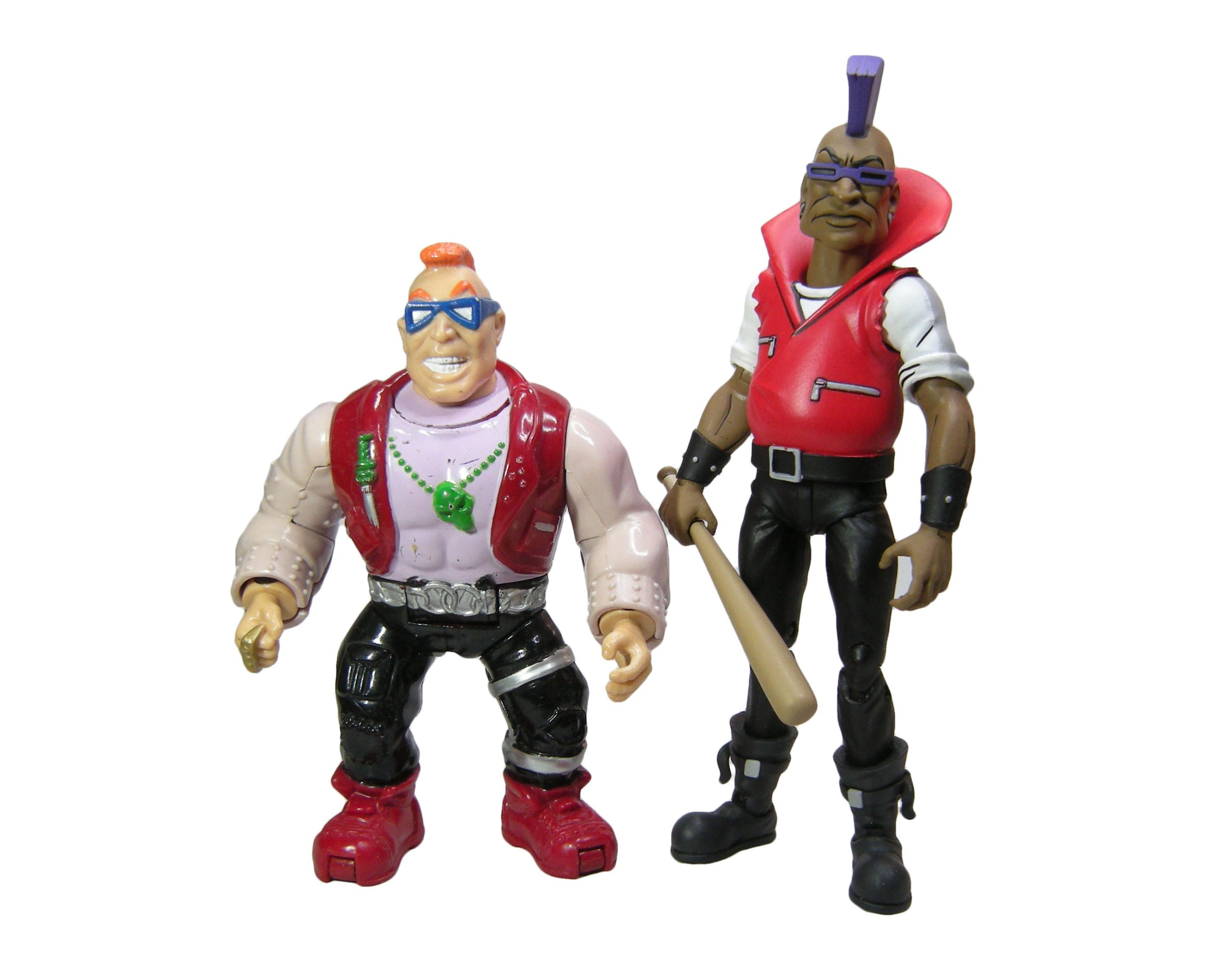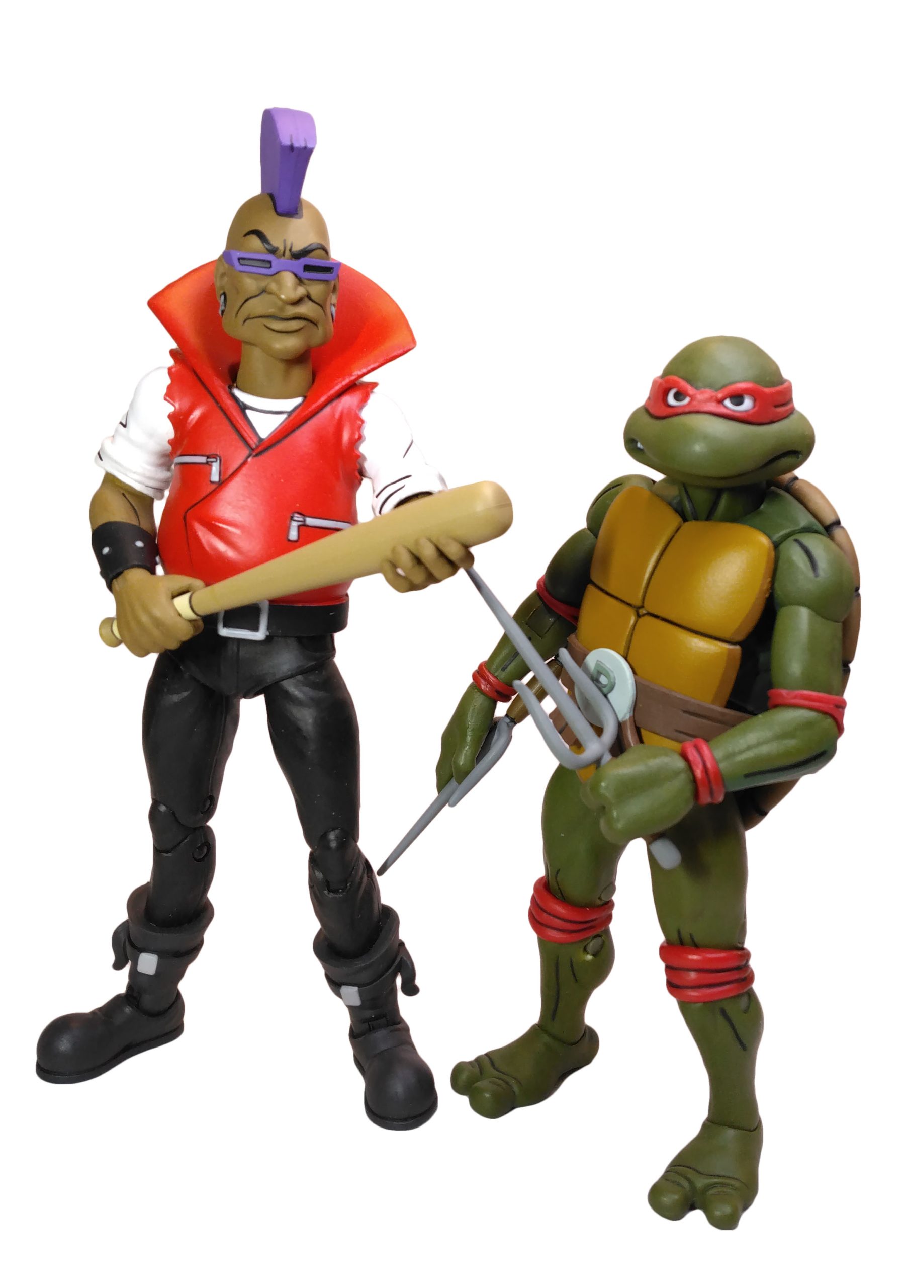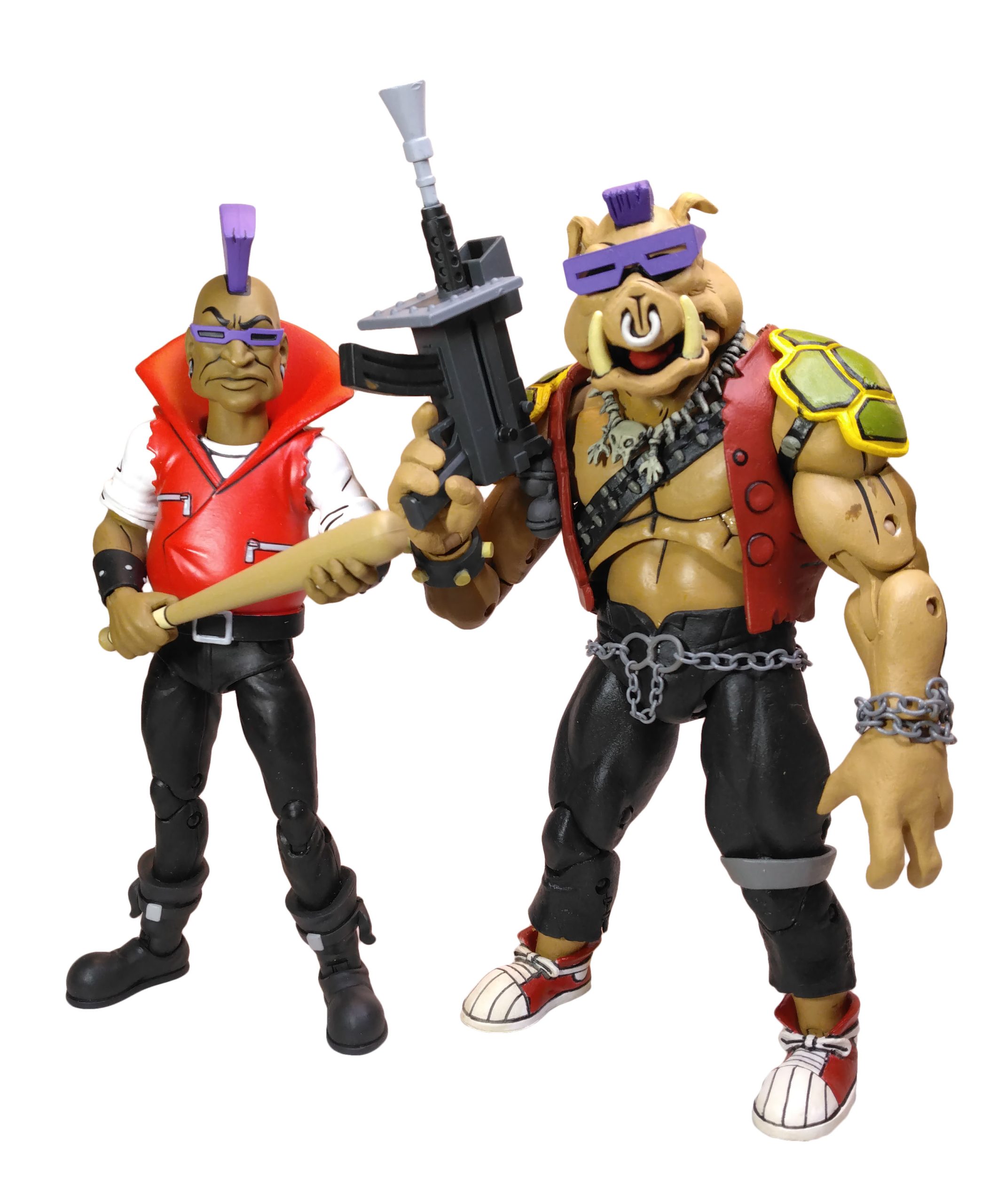 Du côté des armes, celles-ci peuvent très bien convenir aux deux voyous de ce pack. Mais Bebop utilisait bien une batte, lui aussi, lors de l’agression d’April. Cette batte est cependant très différente de celle de son acolyte, qui semble plus rudimentaire. Celle de Bebop est neuve, sans fissure et prête à être jouée dans une partie de baseball.