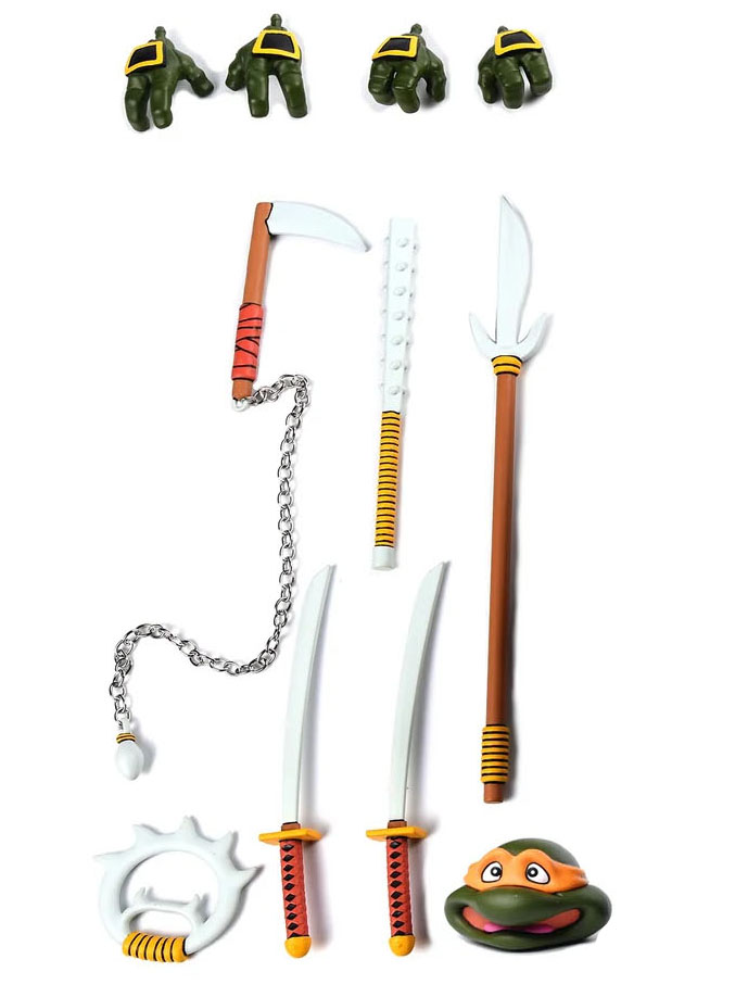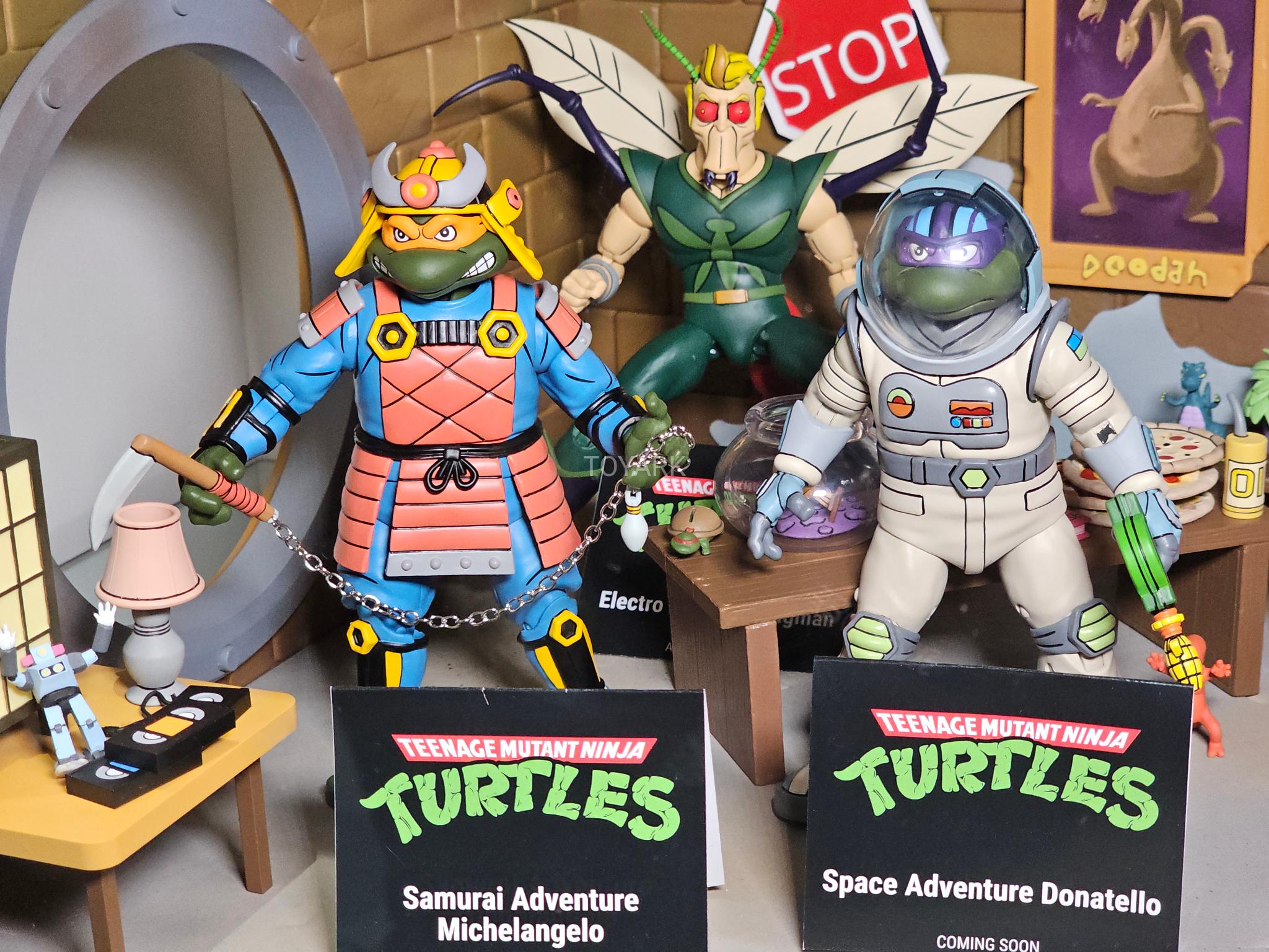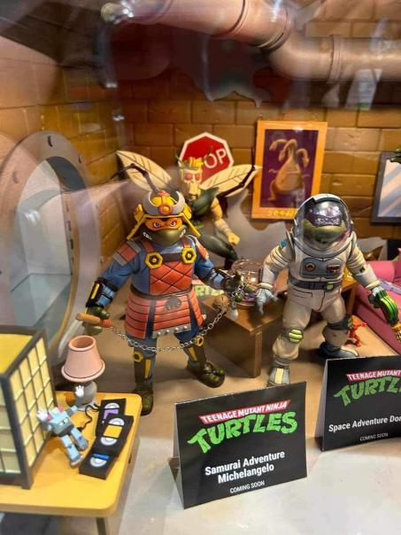 Lors de la Comic Con de 2023, NECA a présenté quelques figurines au design inédit dans le dessin animé de 1987. Ces figurines du genre « what if » sortiraient à travers un double pack « Adventure » composé de Michelangelo en samurai et de Donatello en cosmonaute. Les têtes pouvant se retirer, les fans pouvaient donc intervertir également l’identité des tortues dans leurs costumes à leur guise.
