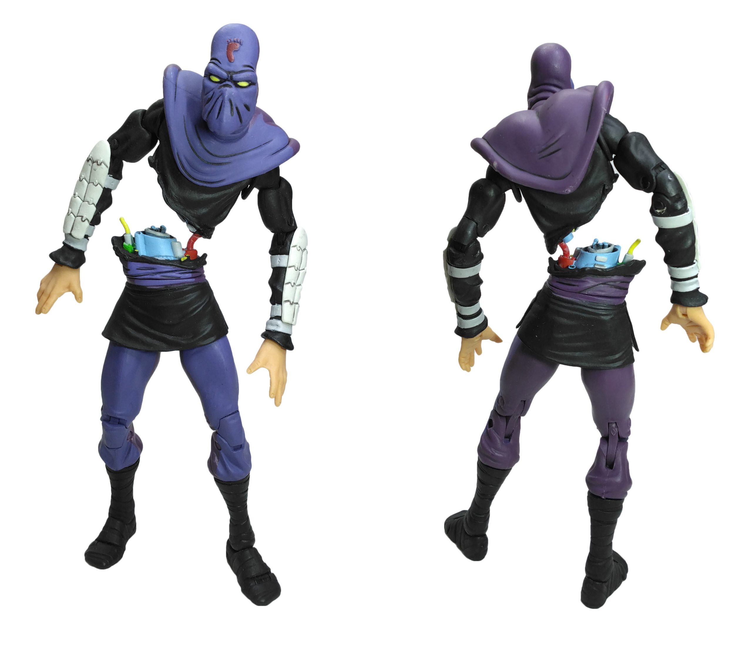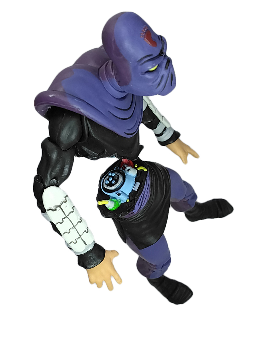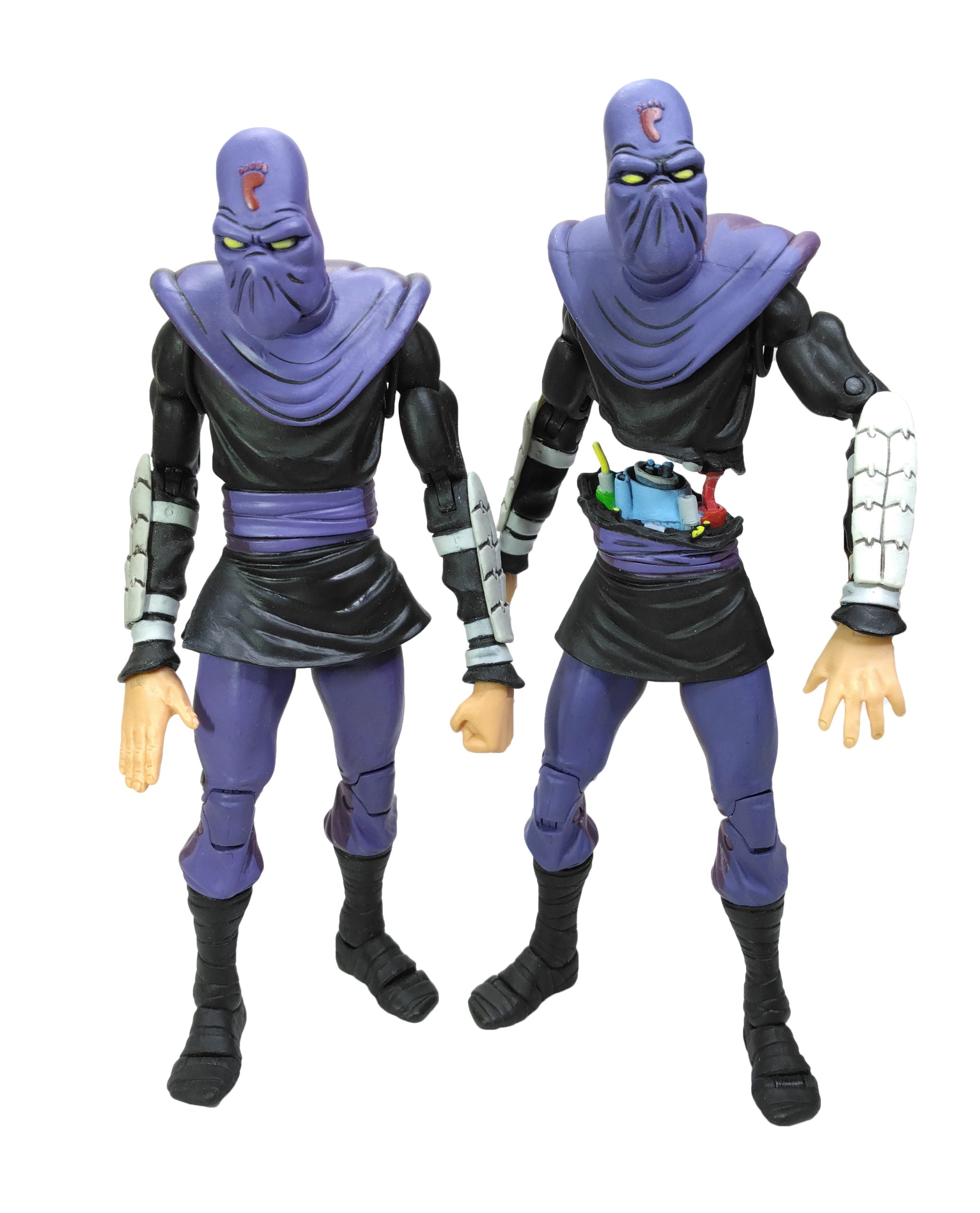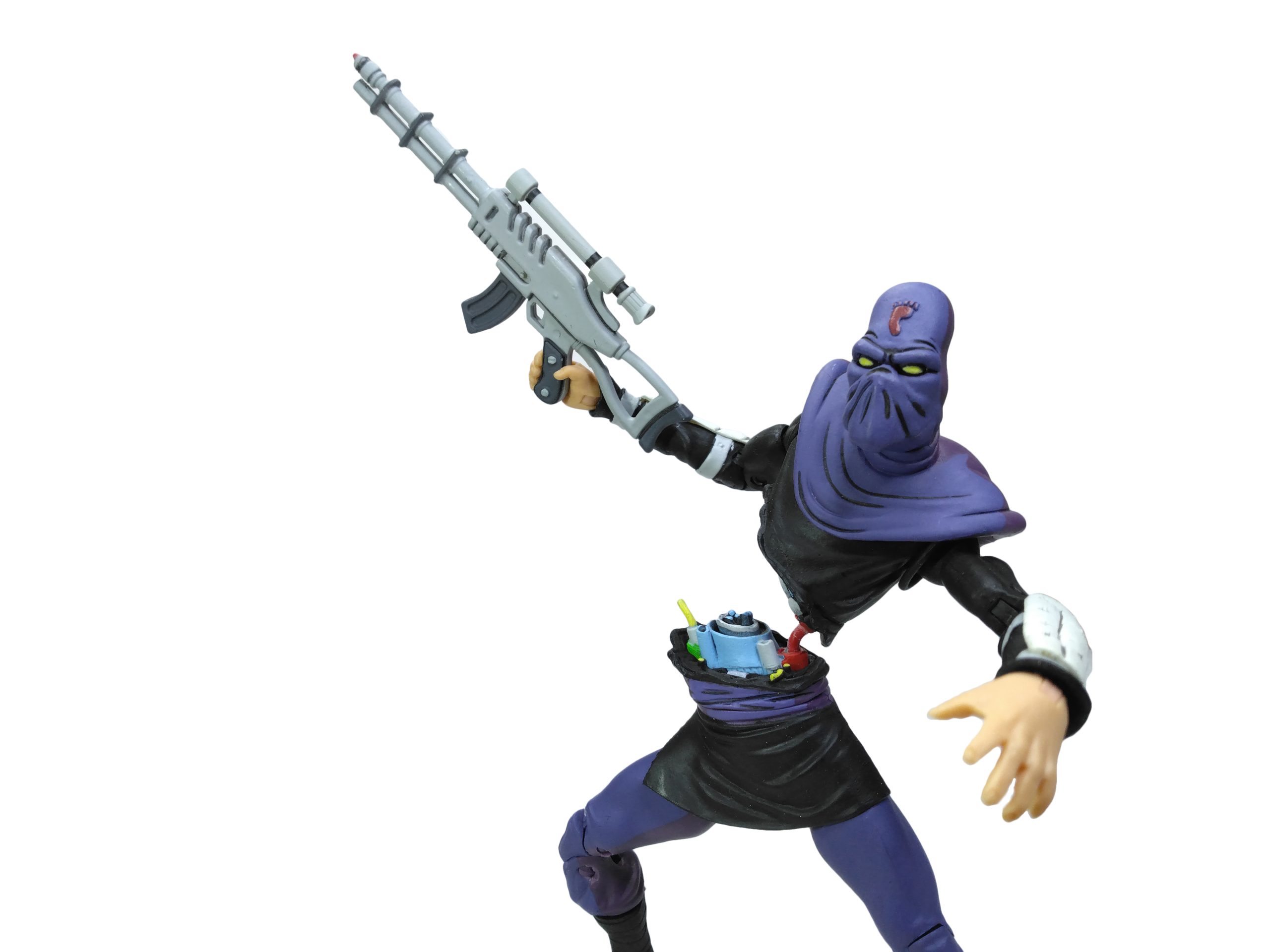 La sculpture de la figurine est principalement issue de celles du Foot soldier et de Shredder du comic de 1984 de NECA, réalisées en 2008 et sorties seulement en 2016 à travers le pack Eastman & Laird’s villains 4-pack. Les seules parties inédites sont la tête et la cagoule qui retombe sur le torse, et les avant-bras.