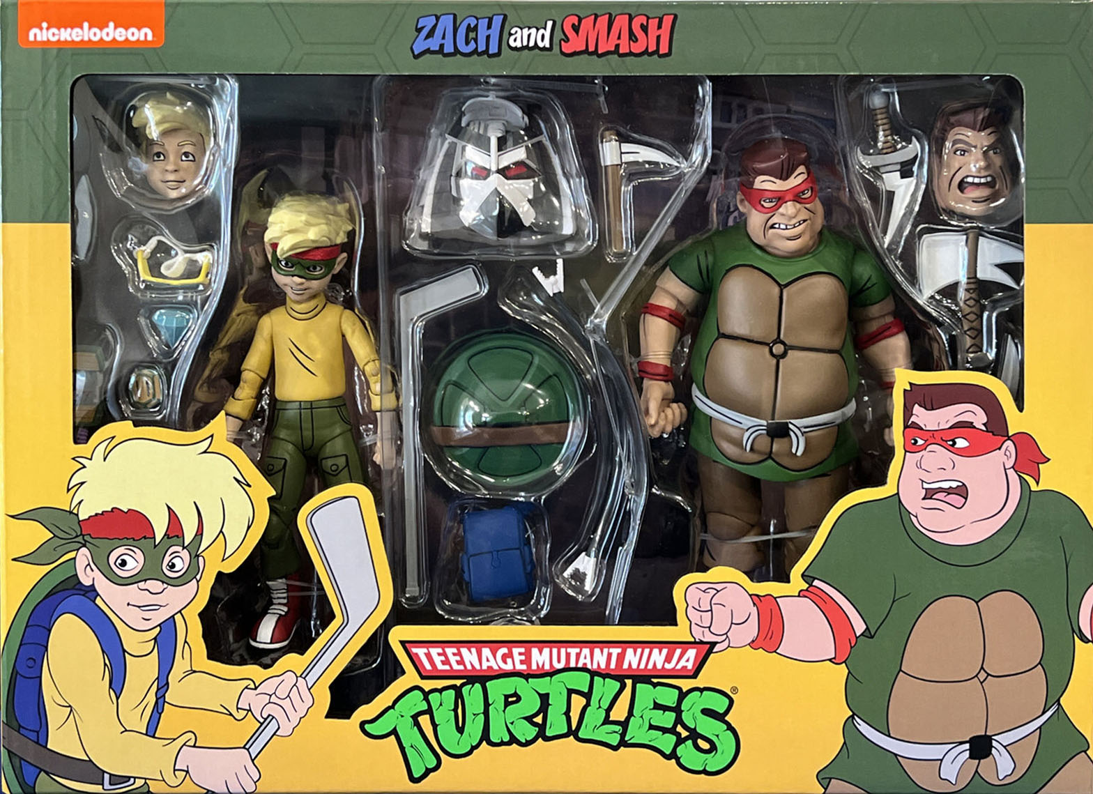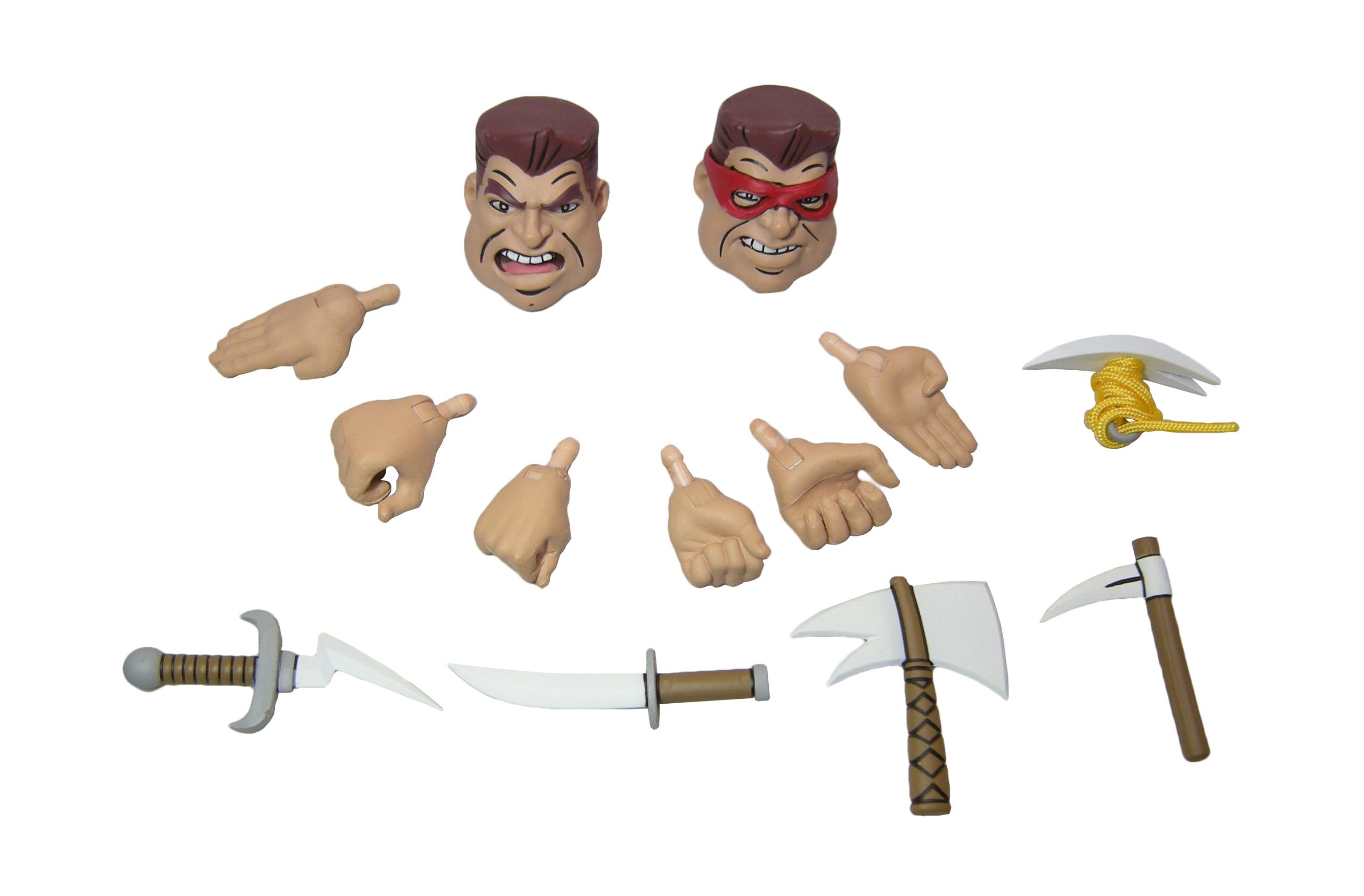 Smash est accompagné de deux têtes interchangeables, trois pairs de mains et d’un petit arsenal de combat. Une des têtes est cachée par le bandeau, l’autre ne le possède pas. L’expression faciale est différente au bas du visage, avec la version non masquée ouvrant la bouche.