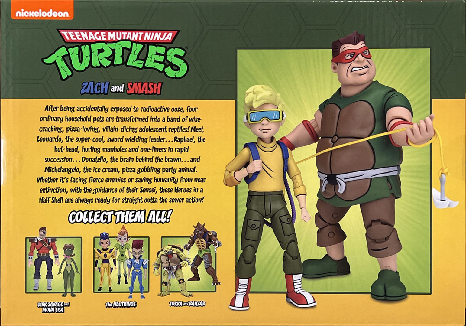 La figurine de Smash est vendue en double pas avec Zach. Le blister, de taille standard, présente les deux figurines à travers une fenêtre en plastique. La boite est illustrée avec les photos de Stephen Mazurek.