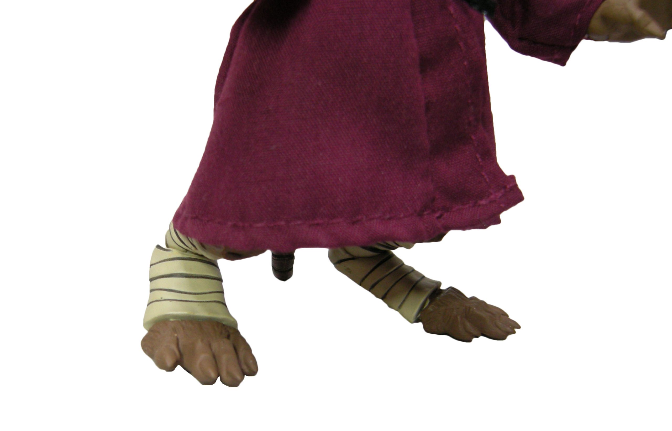 La figurine de Splinter peut surprendre la première fois en mains. Elle est bien plus petite que la plupart des figurines proposées par NECA jusqu’ici. Autre détail qui change, il est accompagné d’une robe en tissu véritable. Enfin, c’est un concentré d’articulations !