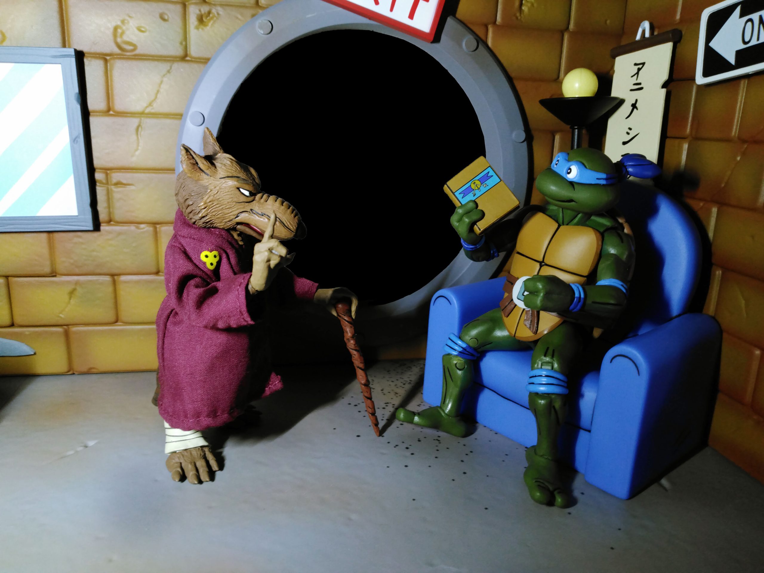 Enfin, dernier accessoire et pas des moindres, le tapis pour la méditation du rat. Il n’était franchement pas utile mais c’est un ajout vraiment appréciable. Surtout lorsque l’on sait que NECA sortira différentes pièces du repaire des tortues en guise de diorama (source). Je doute que le fabricant ait prévu un tel projet dès 2020, surtout au sortir du Covid. Mais ce tapis montre que NECA voulait proposer des possibilités ne serait-ce qu’aux fans qui réalisaient eux-mêmes des dioramas. C’est vraiment plaisant !