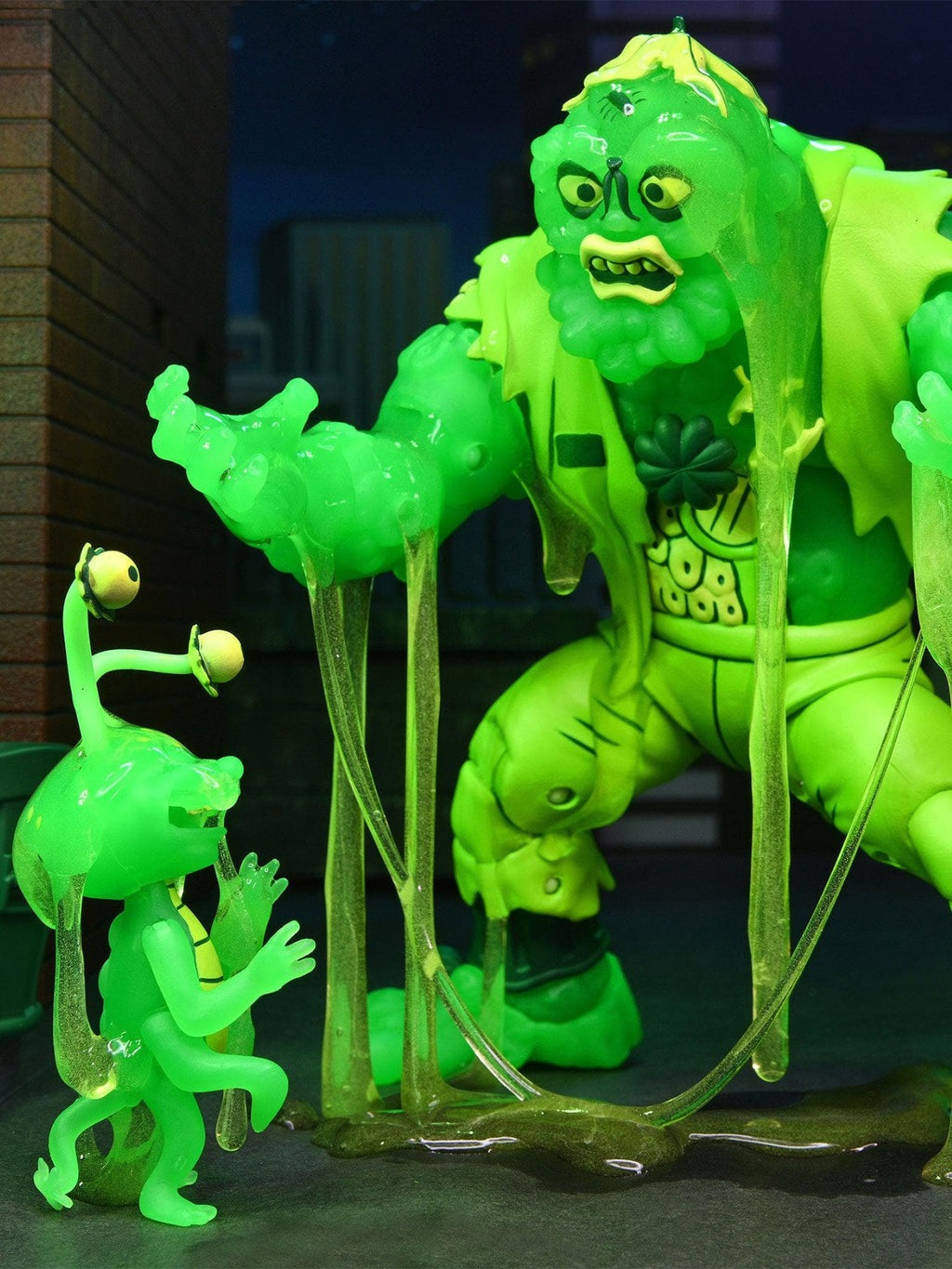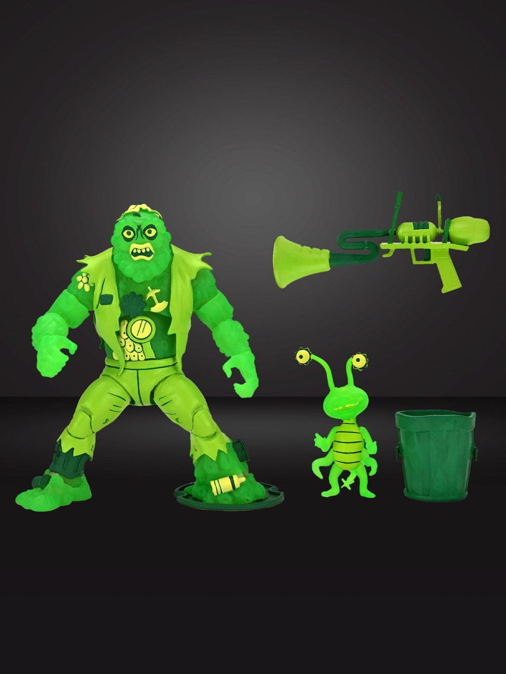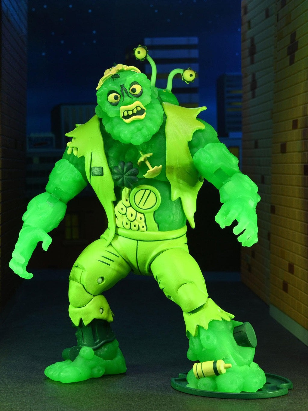 Une première figurine de Muckman avait vue le jour en 2021, pour sa forme régulière. À l’occasion de l’évènement Haulathon, NECA a réédité sa figurine cette fois avec une peinture brillant dans le noir, rappelant la réaction du mutant à l’approche des tortues dans l’épisode Tas de boue gâche tout (S5 E8).
