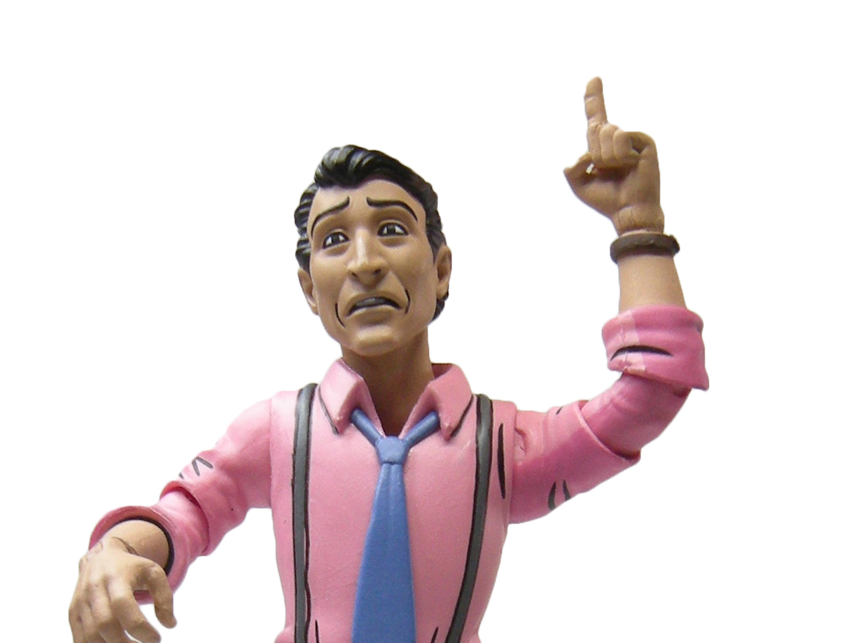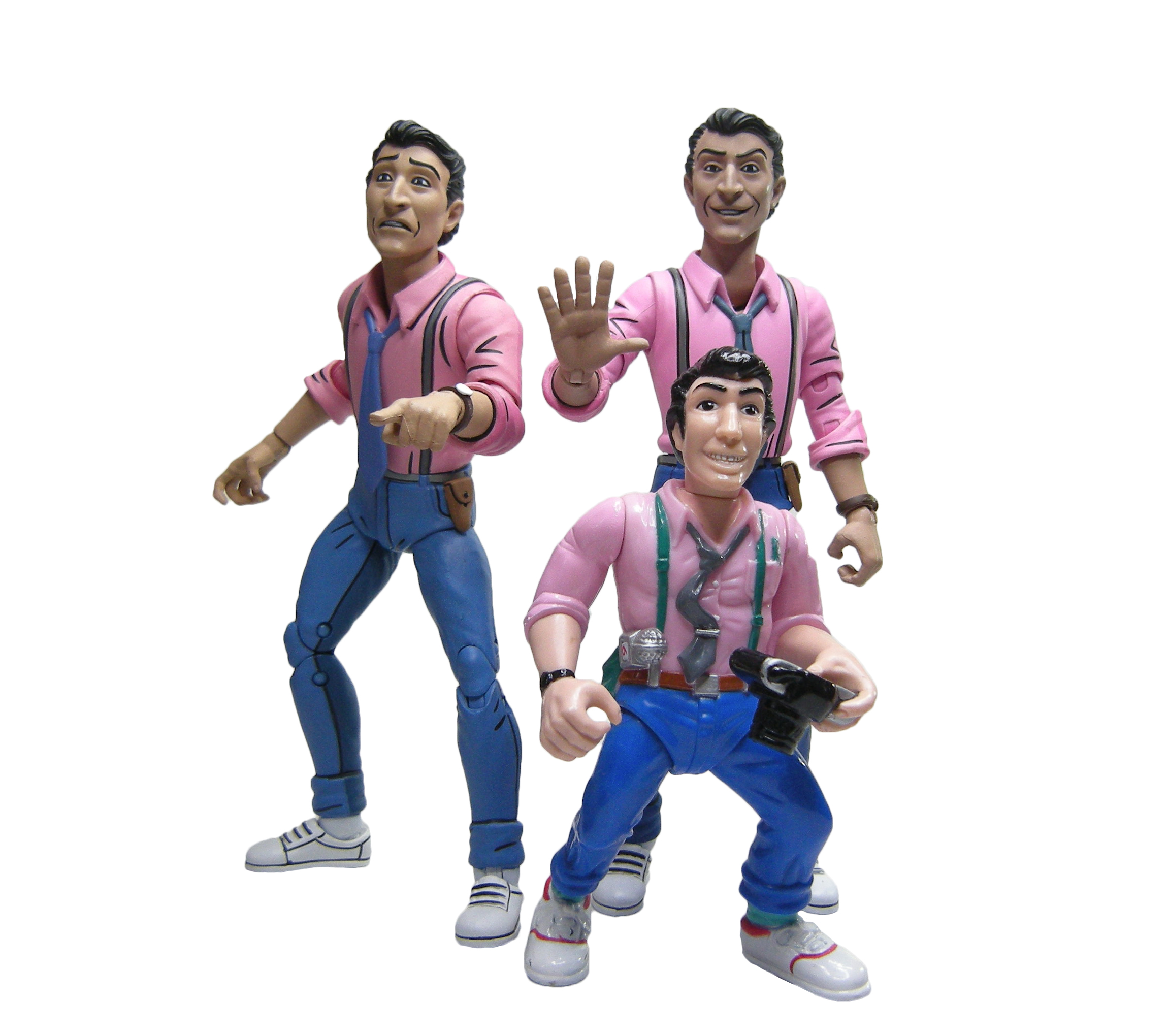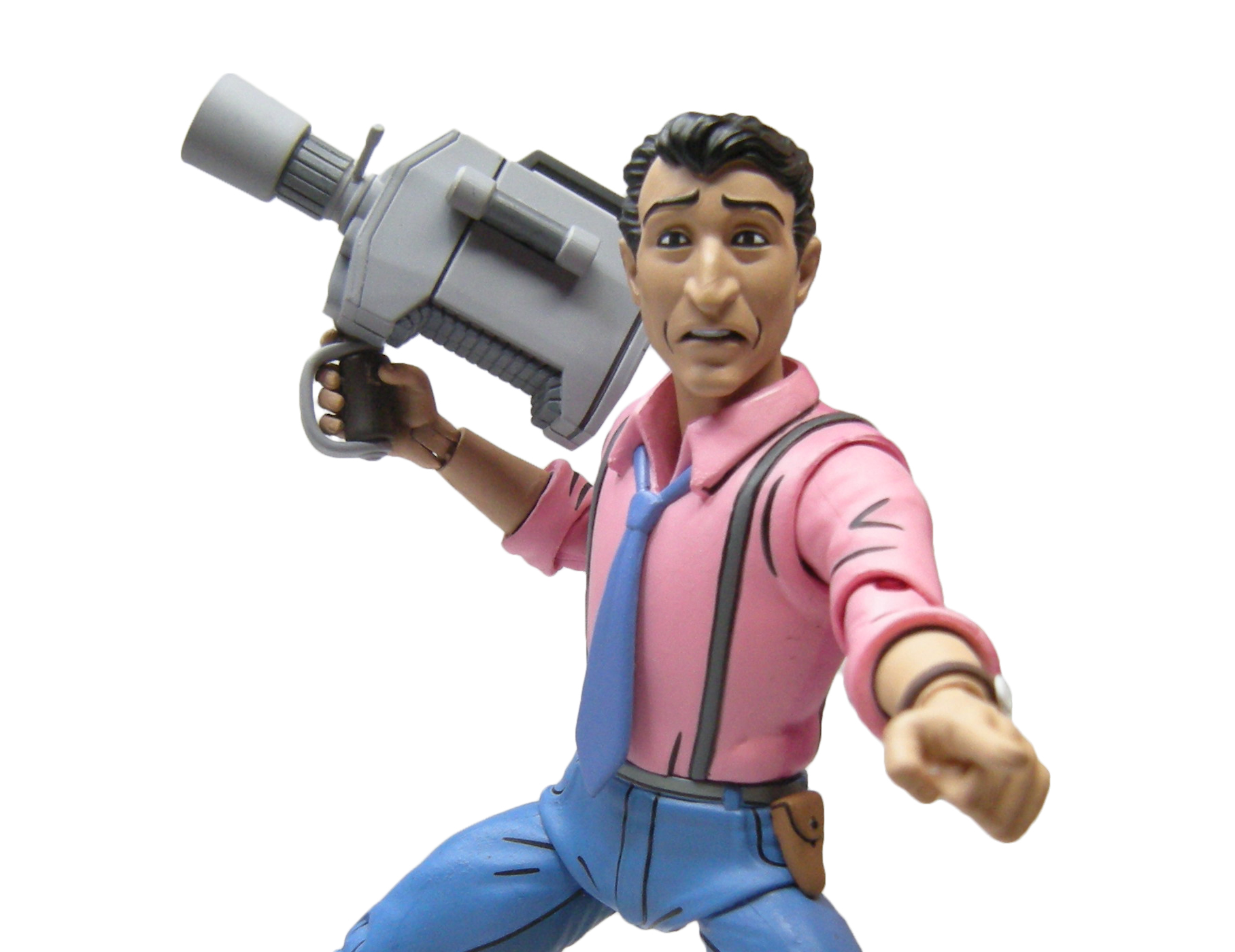 C’est le second élément qui permet de différencier cette version de Vernon de la précédente. NECA a proposé une solution variante économique, en peignant de manière légèrement différente son journaliste. Pour dire vrai, il est juste un peu plus clair. Le rose de la chemise du Vernon précédent était plus soutenu et son jean bien plus foncé, dépourvu d’ombrages. Je pense que la nouvelle version est donc plus fidèle à ce qu’étaient les couleurs du personnage dans le dessin animé. La cravate est également plutôt bleutée, contrairement à la précédente, grise.