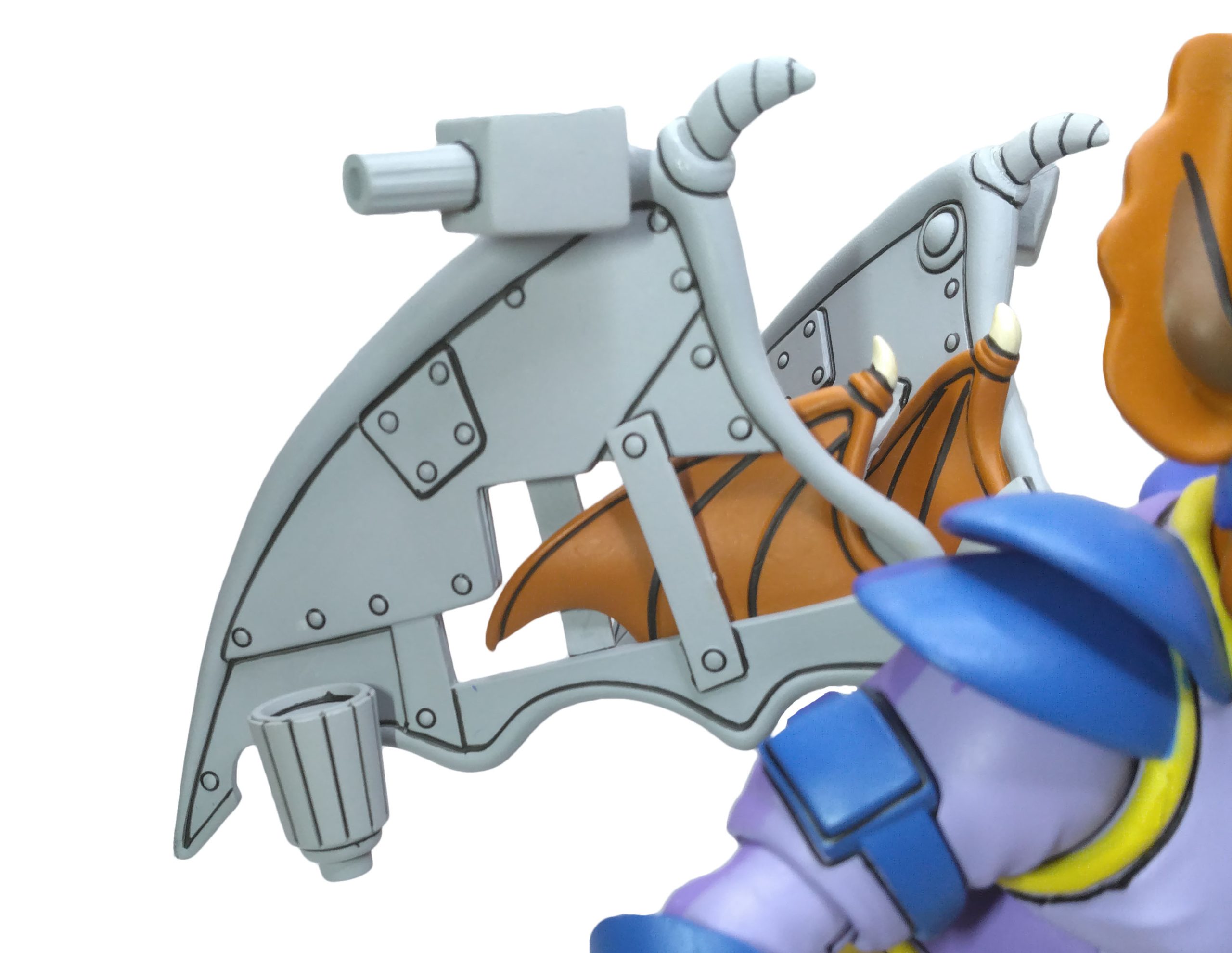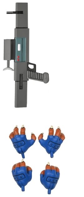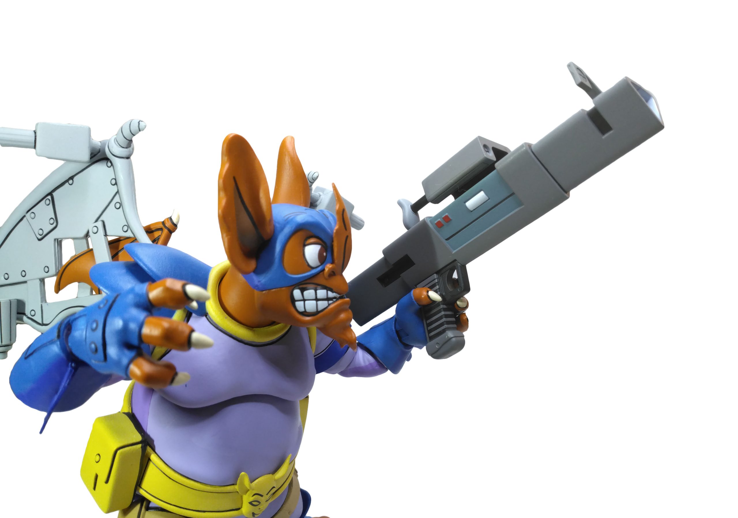 Notre chauve-souris de l’espace dispose de trois paires de mains interchangeables. Une paire aux poings fermés, une permettant de tenir son arme et une aux doigts ouverts, présentant ses griffes.