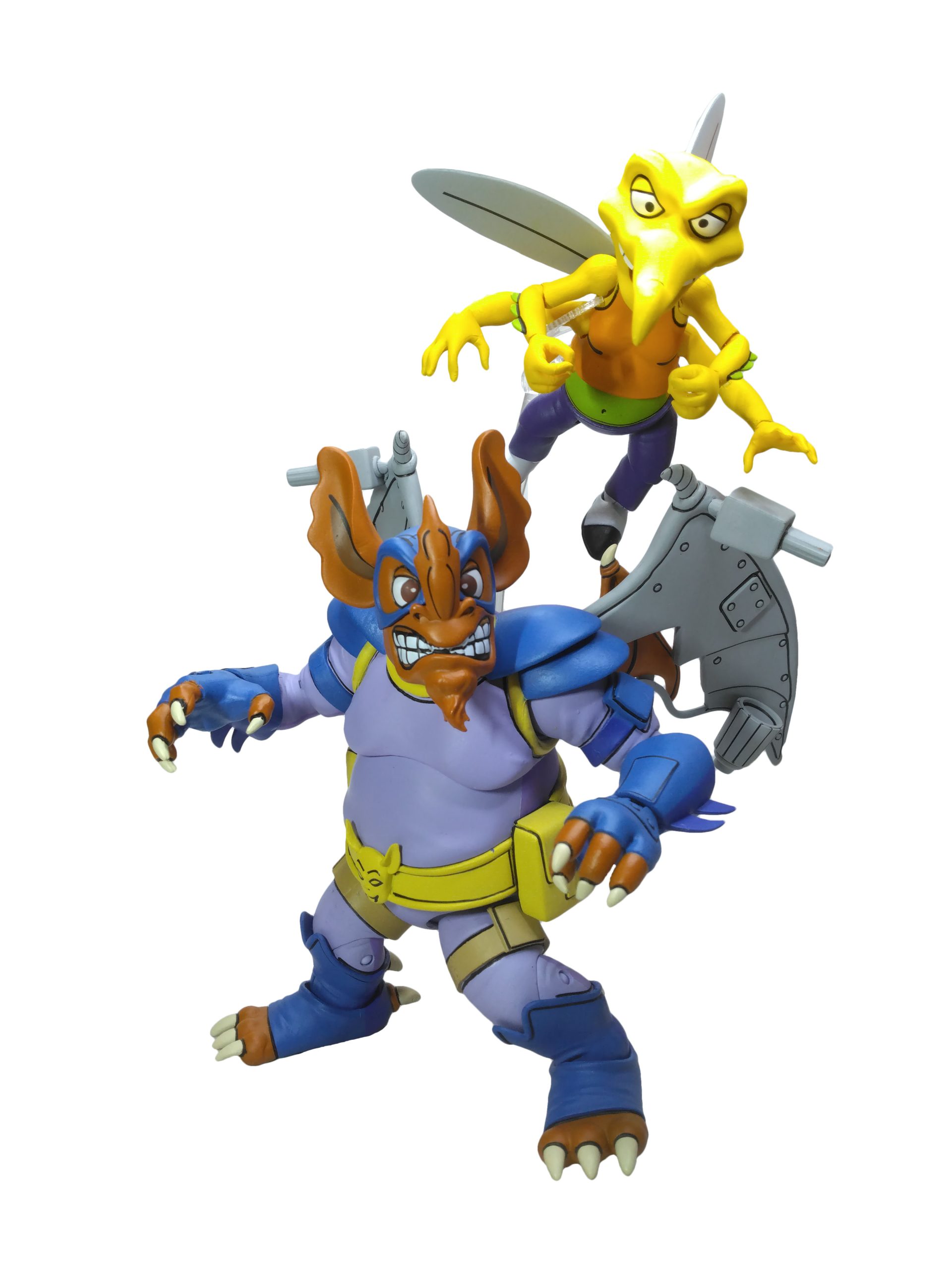 Le blister de Wingnut et de Screwloose est bien plus épais que la plupart des autres boîtes déjà proposées par NECA. Et pour cause ! D’un côté nous avons une chauve-souris très volumineuse, aussi bien en largeur qu’en épaisseur. De l’autre, nous avons le moustique, qui bien que petit, n’est pas en reste avec son énorme socle avec bras télescopique !