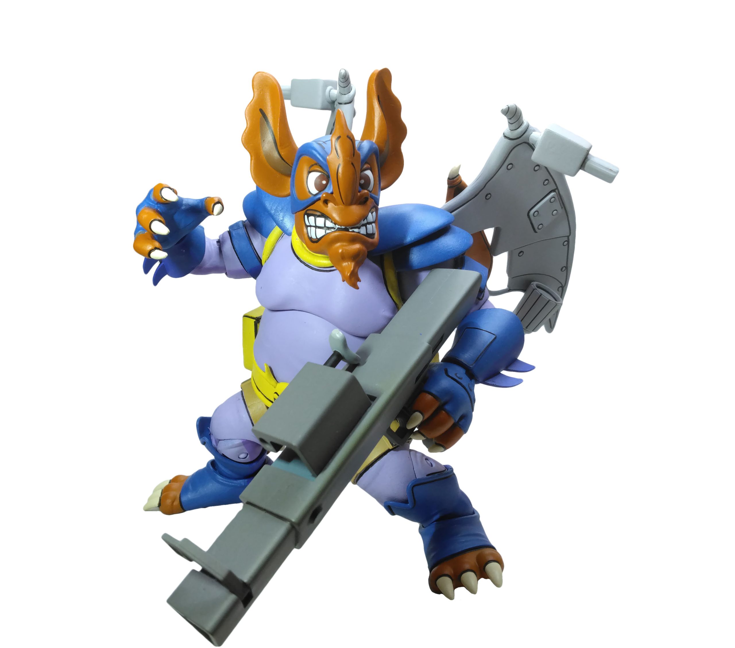 Son arme rappelle beaucoup les bazzokas des triceratons. Hélas, il est impossible d’actionner la lunette de visée de l’accessoire et la ranger. Il s’agit d’une partie collée dans l’armature générale de l’arme.