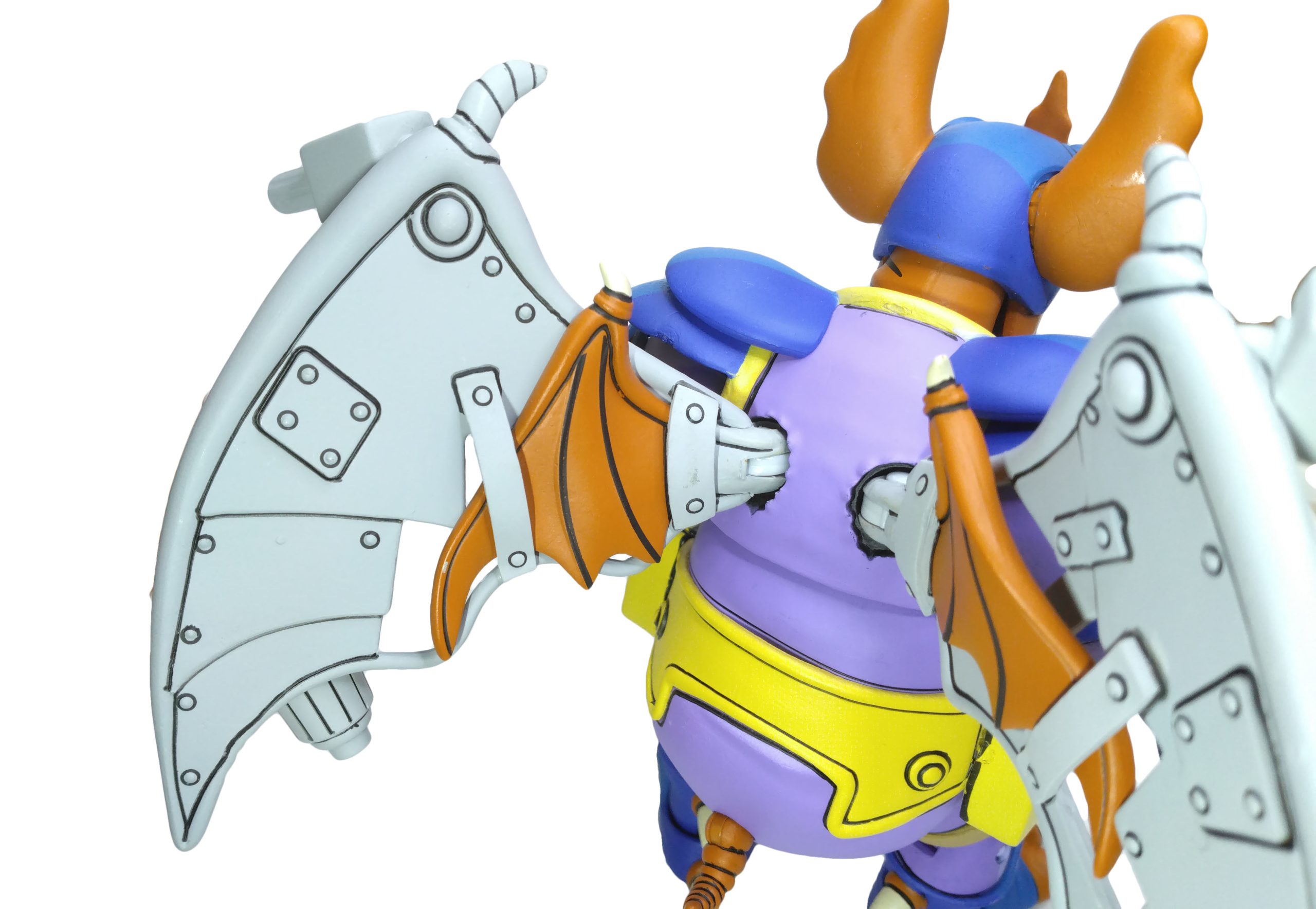 L’ensemble de la figurine est rehaussée par des traits noirs pour les plis de ses vêtements ou encore les différentes sections de son corps. Nous retrouvons également le style bicolore de la gamme, imitant le style cartoonesque de la série, avec une couleur plus sombre à l’arrière de la figurine. En revanche, ses ailes ne sont pas assombries.