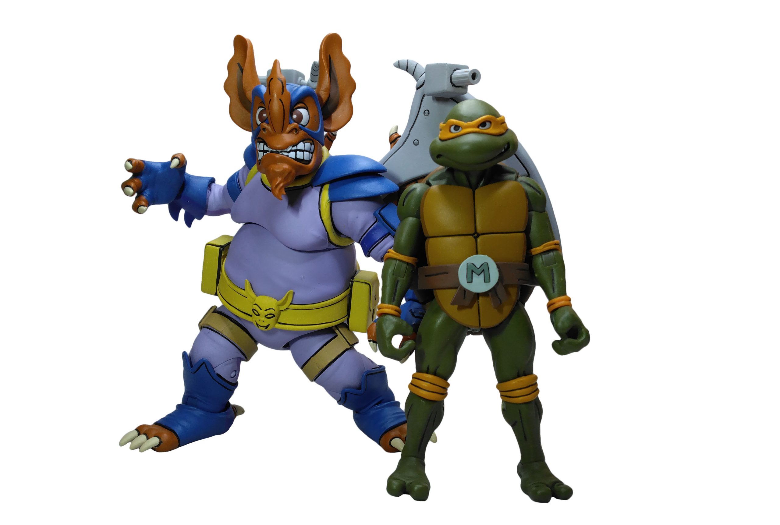 Les figurines sont visibles à l’avant grâce à une fenêtre en plastique. À l’arrière, NECA a détaillé les figurines de la huitième wave, Dirtbag et Groundchuck, mais aussi du pack Ultimate Mondo Gecko et du Deluxe Chrome Dome.