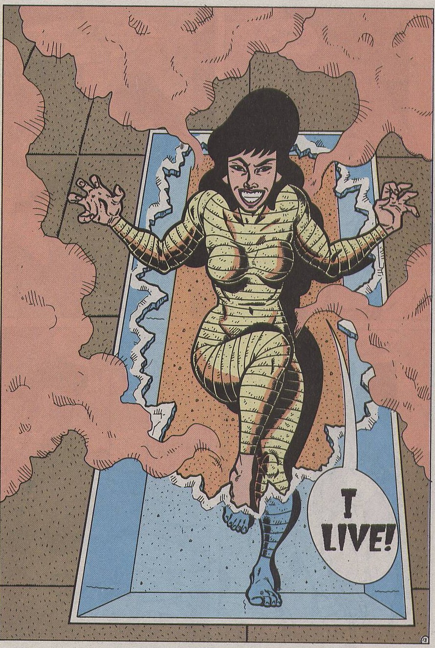 - Au moment de se transformer, les bandelettes qui entouraient le corps de May East se sont déchirées. Lorsque les tortues retrouvent April, après avoir recouvré son apparence humaine, à la fin de ce numéro, ses vêtements sont intacts.