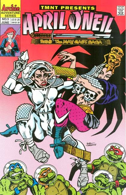 Cette volonté d’écarter cette série peut s’expliquer par le fait que la première mini-série autour d’April ait été déjà scénarisée par Steve Sullivan et encrée par Brian Thomas. Les deux n’ayant pas apprécié la tournure scénaristique de May East saga et ses dialogues extrêmement creux, l’ont relayée au titre de rêve, sans conséquences pour TMNT Adventures, et trouvés le dessin si médiocre (extrêmement critiqué par les fans) que cela ne méritait pas d’être considéré autrement que comme un déchet. Tout cela n’est que supposition au vu des éléments, nous n’avons aucune preuve concrète.