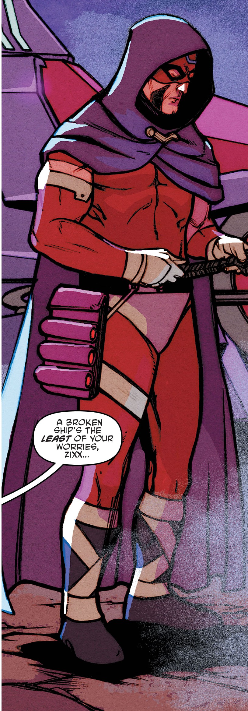 Même si son travail n’était guère différent, Luna Azul ordonnait à ses équipiers de capturer le contrebandier, sous les critiques de la princesse Trib. Mais Grotto et Exeen ne parvenait pas à lui passer les menottes. Il s’agissait une fois encore d’un hologramme. Pire encore, Trip prévenait ses compagnons qu’il détectait plusieurs présences sur l’astéroïde. Des dizaines d’hologrammes de Torbin Zixx apparaissaient autour d’eux ! Sans perdre de temps, la commandante demandait à son équipe de s’occuper de chacun d’eux. Trip et Zebulon, restés dans le vaisseau, avait pour ordre de tirer sur son vaisseau s’il cherchait à quitter le rocher.