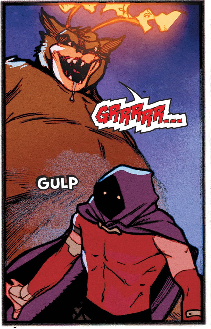 • Michelangelo dit avoir de l’expérience avec les grosses bêtes en colère qui aiment les friandises. Il s’agit d’une référence à sa première rencontre avec Slash (TMNT #24) qui s’était soldée par une très grande amitié entre les deux tortues.