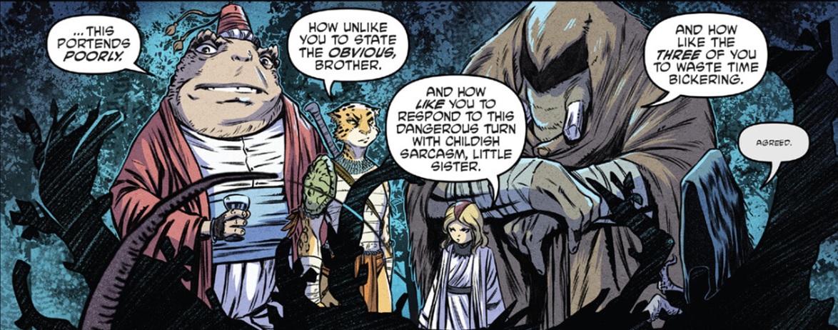 La situation tendue forçait le Pantheon à se poser des questions. Les membres de la famille illustre allaient-ils entrer en guerre contre leur frère ? Comploter les uns contre les autres, ils l’avaient déjà tous faits. Kitsune la dernière (TMNT #72). Mais cette fois, ils devaient se lever contre les desseins du Rat King. Peut-être la seule manière d’en venir à bout après tout…