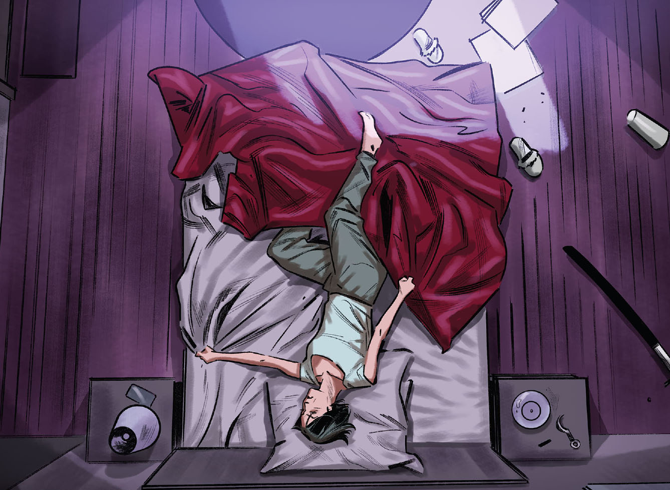 Se réveillant en sursaut, Karai regardait sa main. La même main que celle où Shredder avait laissé une cicatrice, preuve de son passage dans ses songes. (TMNT Villains micro-series #5 : Karai). Cette fois, il n’y avait rien. Soudain, son téléphone vibrait. Il s’agissait d’une alerte de l’information qui annonçait que Stockman venait d’être attaqué lors de son allocution (The Armageddon Game #1). Regardant la vidéo de l’attentat, Karai constatait immédiatement qu’il ne s’agissait pas des tortues. Leurs mouvements étaient trop maladroits. Même Michelangelo se débrouillait mieux que ça ! C’était un canular pour monter l’opinion contre les mutants ! Jetant le téléphone au sol, fatiguée de tout cela, la jeune femme réfléchissait aux derniers évènements. Elle devait faire alliance avec Shredder et les tortues. Il y avait ce rêve et maintenant cette attaque. Dans une telle situation Toshiro lui aurait à n’en pas douter suggéré la méditation pour remettre ses idées en place. Elle préférait clairement partir se défouler sur les toits.