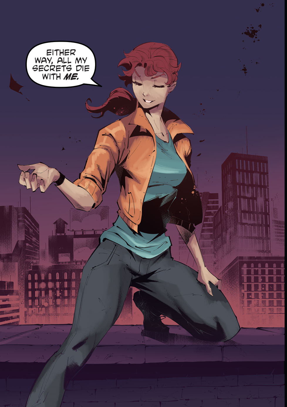 April arrivait à la boutique de ses parents, éreintée. Elle y trouvait Casey et se jetait dans ses bras. Se couchant sur ses genoux, dans le canapé, elle lui demandait d’appeler Donatello au plus vite. John O’Neil et Casey passèrent plusieurs appels dans les jours suivants. Le justicier avait quelque chose à montrer à April.