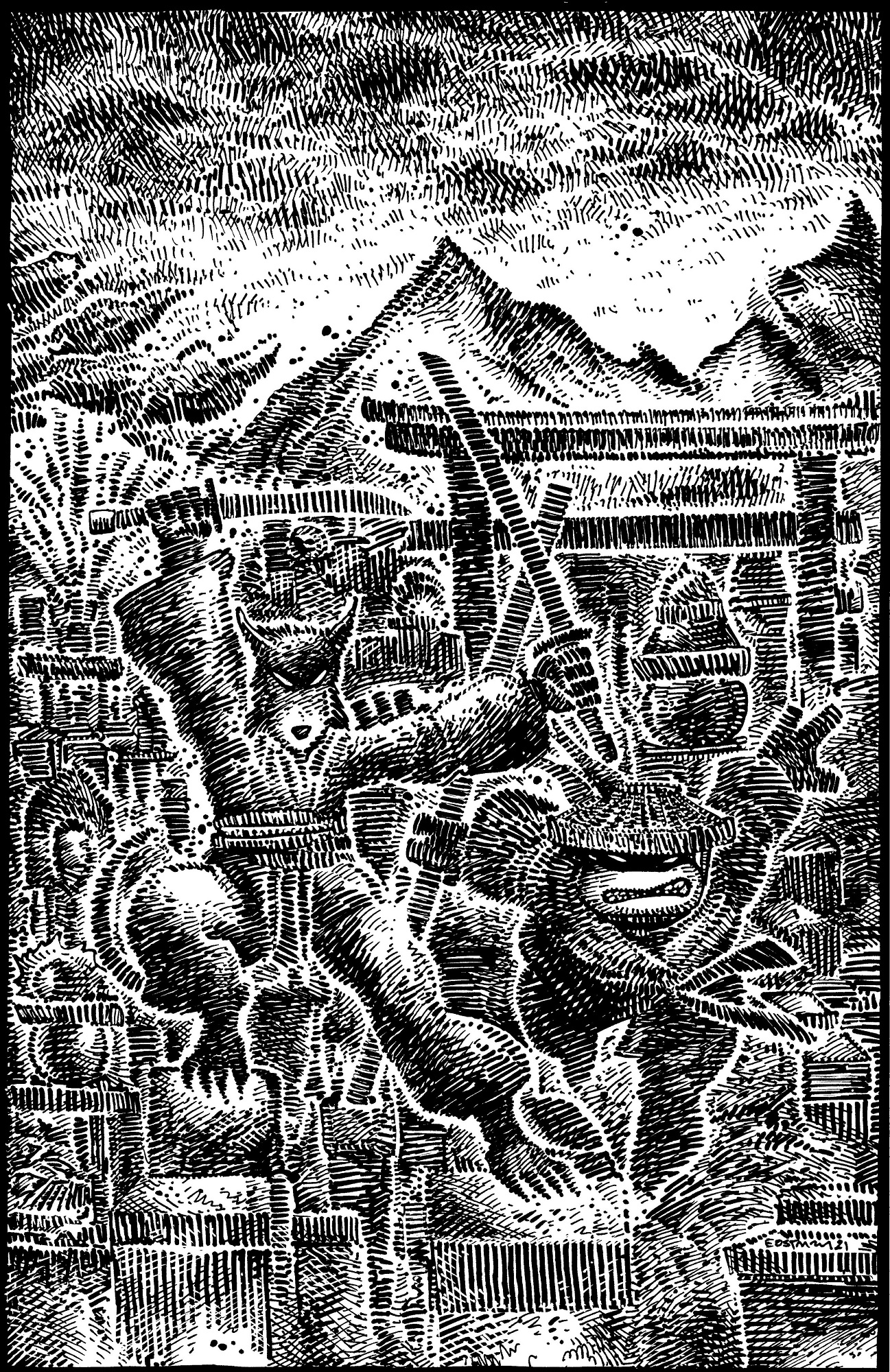 9. Cover RE The Hive Comics (black & white) – Stan Yak. Pour le fournisseur The Hive Comics. Limitée à 250 exemplaires.