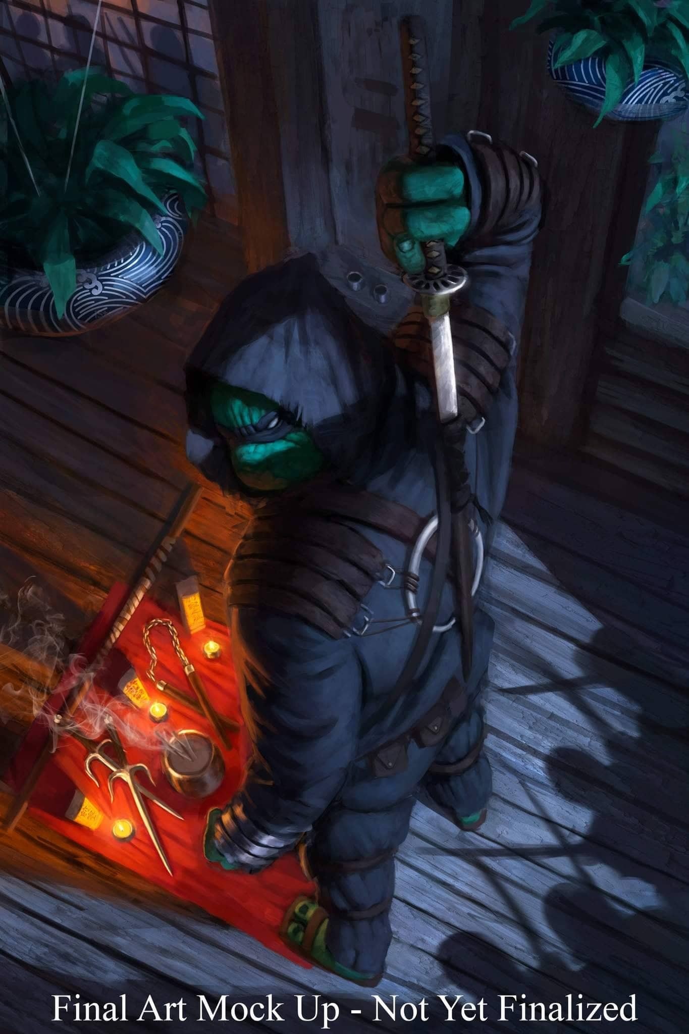 Peu de temps après, le clan Hamato et le Foot Clan avaient convenus d’un lieu pour signer officiellement la fin de leur guerre centenaire. Au milieu d’une clairière, une forêt de pierres tombales remplaçaient les arbres, depuis longtemps disparus de cette dépression en forme de creux. Quel lieu étrange se disait Splinter, espérant qu’il s’agisse d’une maladresse de leur interlocuteur. Aucnu signe de combattants n’avait été observé aux alentours. Le représentant du clan rival s’avançait vers eux, leur demandant d’excuser Oroku Hiroto, qui s’occupait des derniers préparatifs pour la célébration de la paix entre les deux clans. Il ne saurait tarder. En revanche, il demandait à Splinter, Shinichiro et aux autres hommes de déposer les armes. Tel était l’accord qu’ils avaient passé pour la réalisation de ce traité. Sentant que quelque chose se préparait, le rat restait sur ses gardes, déposant sa main sur la poignée de son sabre, prétextant qu’il n’était que rituel. Bientôt, Hiroto arrivait, accompagné de sa garde montée sur cheval. L’homme ironisait la situation. C’était si simple de mener les derniers représentants du clan Hamato dans ce lieu pour en finir. D’ailleurs, avaient-ils eus dernièrement des nouvelles des leurs à New York ?