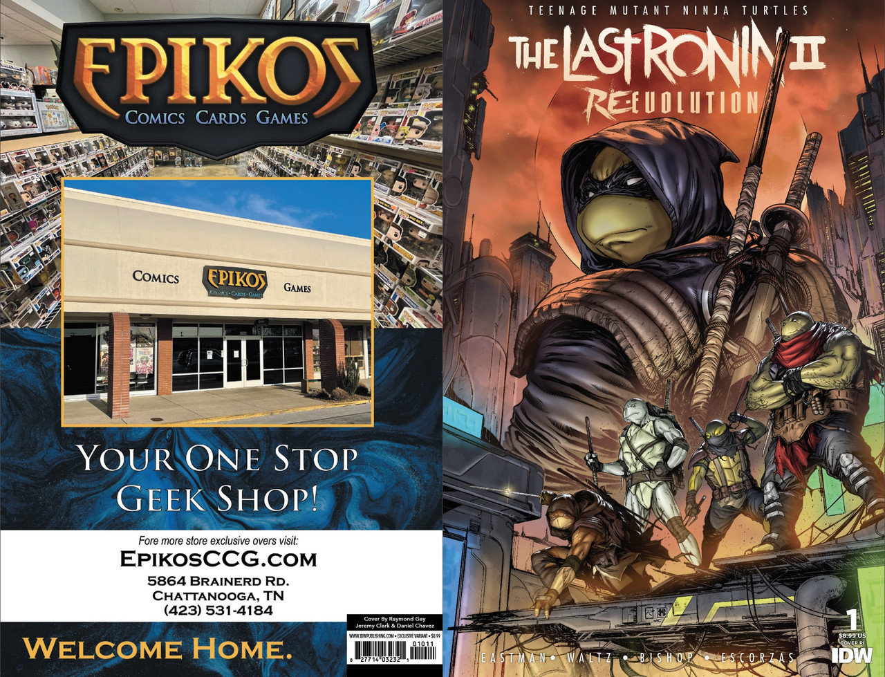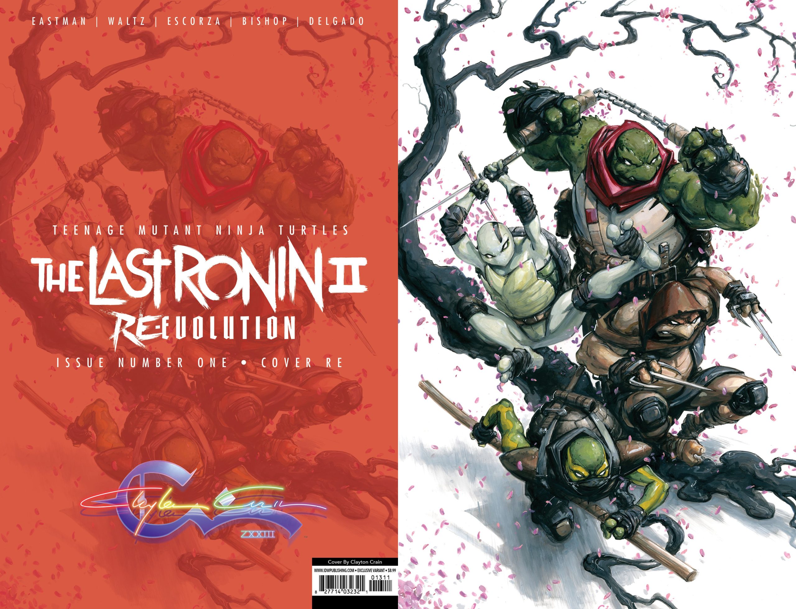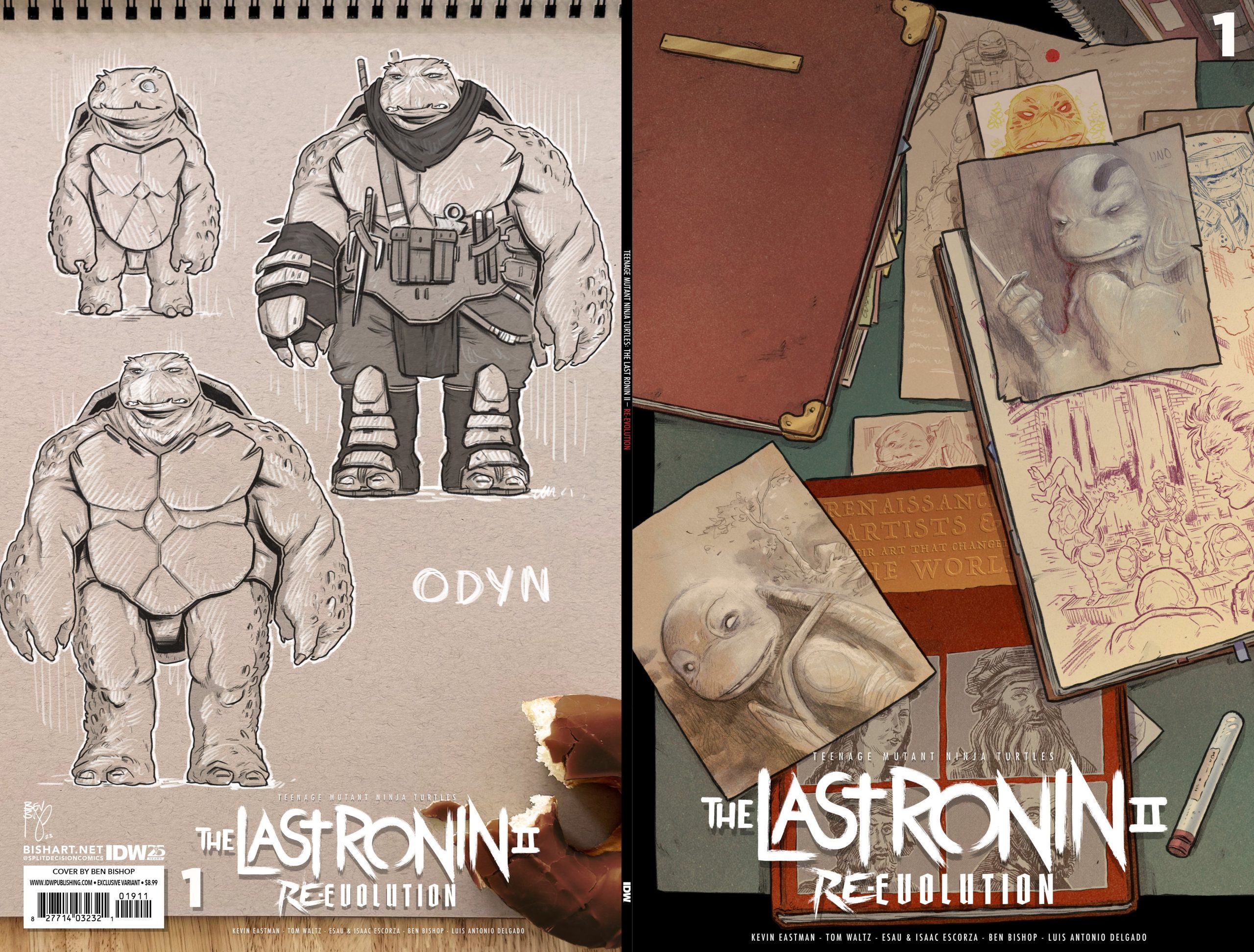 - The last ronin – Re-Evolution #1 Hardcover exclusive edition – Kevin Eastman (layouts) et frères Escorza (dessin). Hardcover exclusif, ne comprenant que le premier numéro, en exclusivité pour le site d’IDW Publishing. 29,99$. 6 mars 2024.