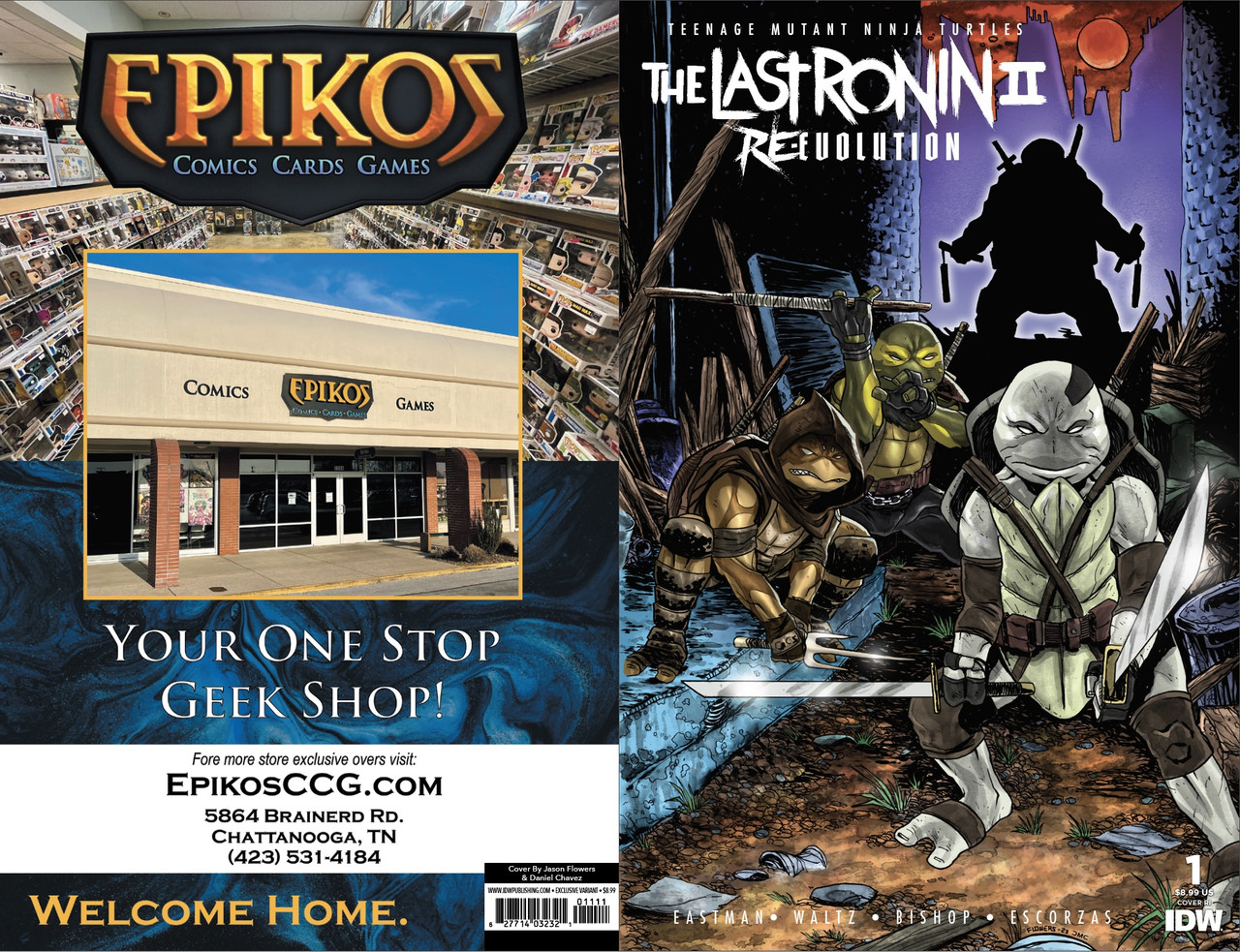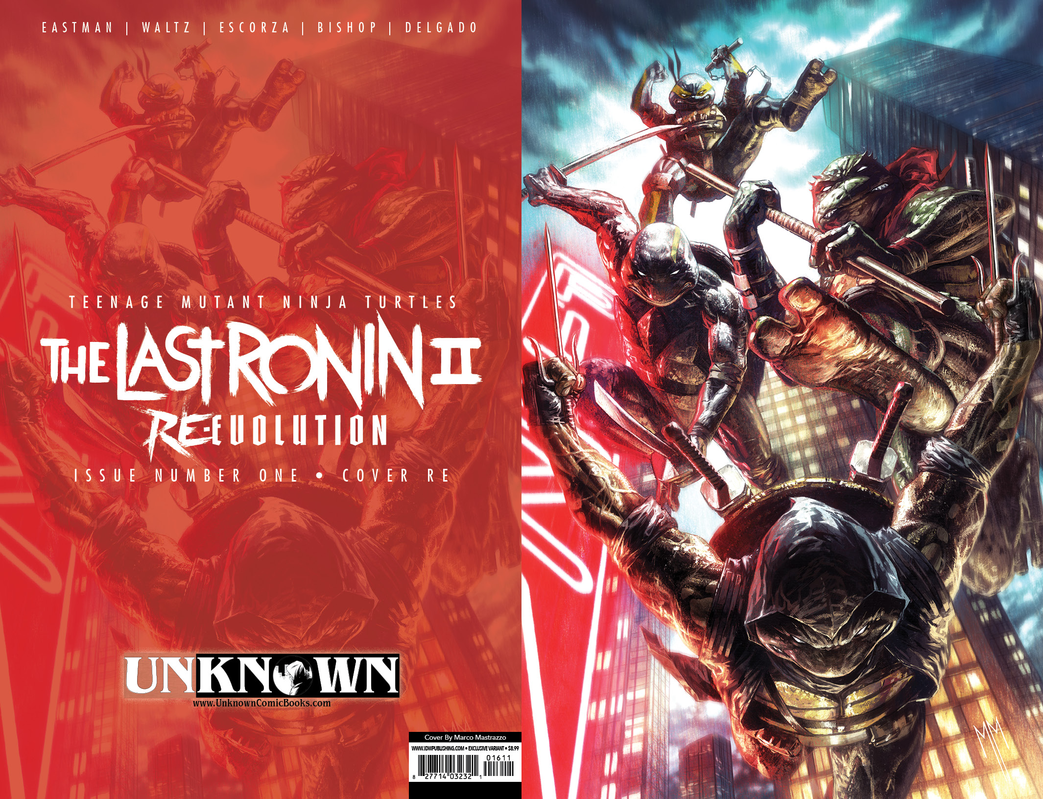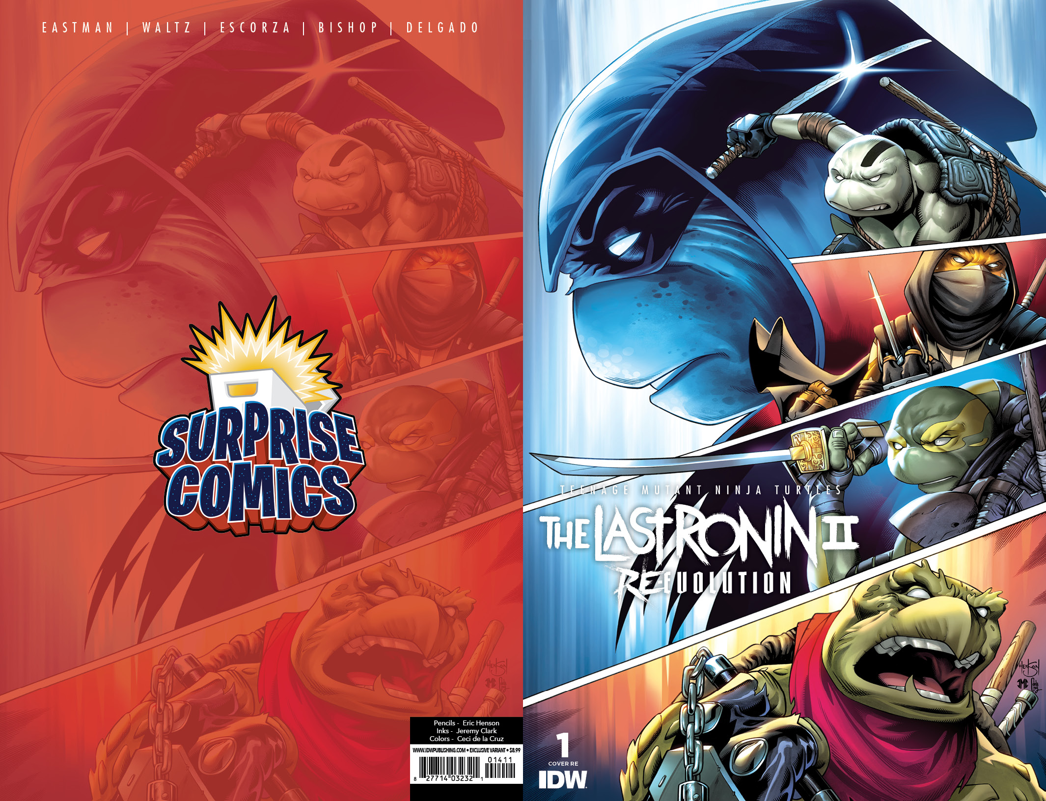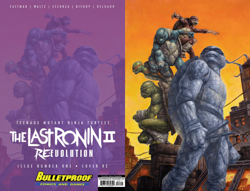 - The last ronin – Re-Evolution #1 Hardcover exclusive edition – Kevin Eastman (layouts) et frères Escorza (dessin). Hardcover exclusif, ne comprenant que le premier numéro, en exclusivité pour le site d’IDW Publishing. 29,99$. 6 mars 2024.