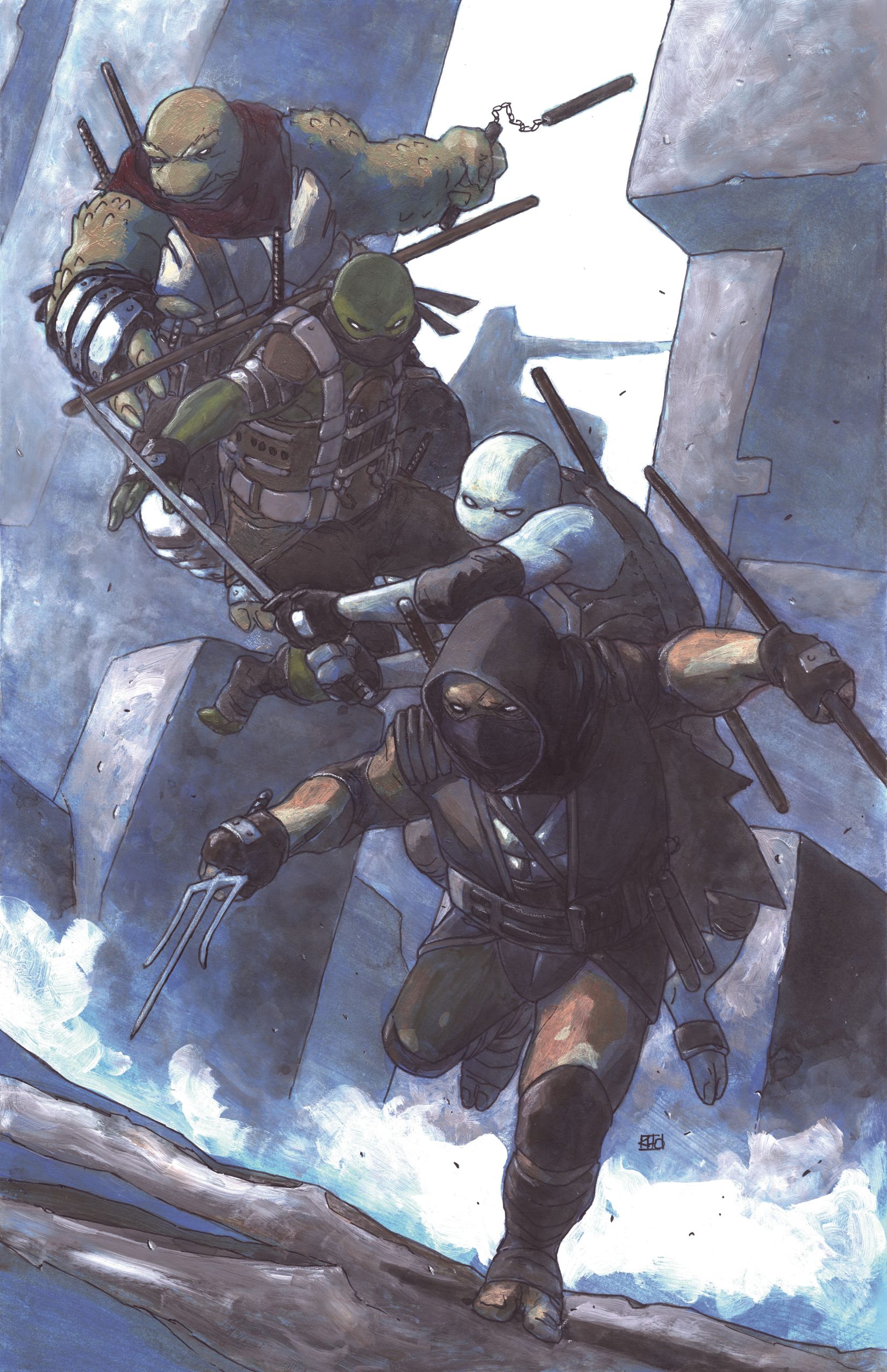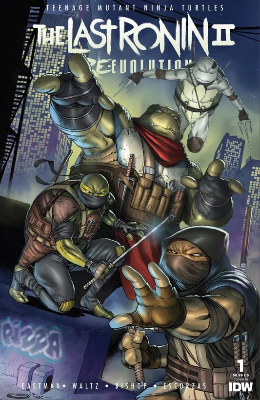 More than a decade after the Last Ronin defeated the Foot Clan, New York City finds itself in a state of steady decline. Now, the disparate gangs vie for economic and political control and that the chaos is taking its toll. It’s clear to Casey Marie that if something isn’t done soon, the city she knows and loves will be lost forever. So, whether they’re ready or not, she and her young pupils must raise a new coalition and lead the charge to keep the peace. Witness the rise of the next generation of Teenage Mutant Ninja Turtles as they fight to restore peace to the streets they live below! Legendary TMNT co-creator Kevin Eastman proudly presents the next epic chapter of The Last Ronin, reassembling the acclaimed creative team from the original monster bestseller for a second oversized, prestige format miniseries event!