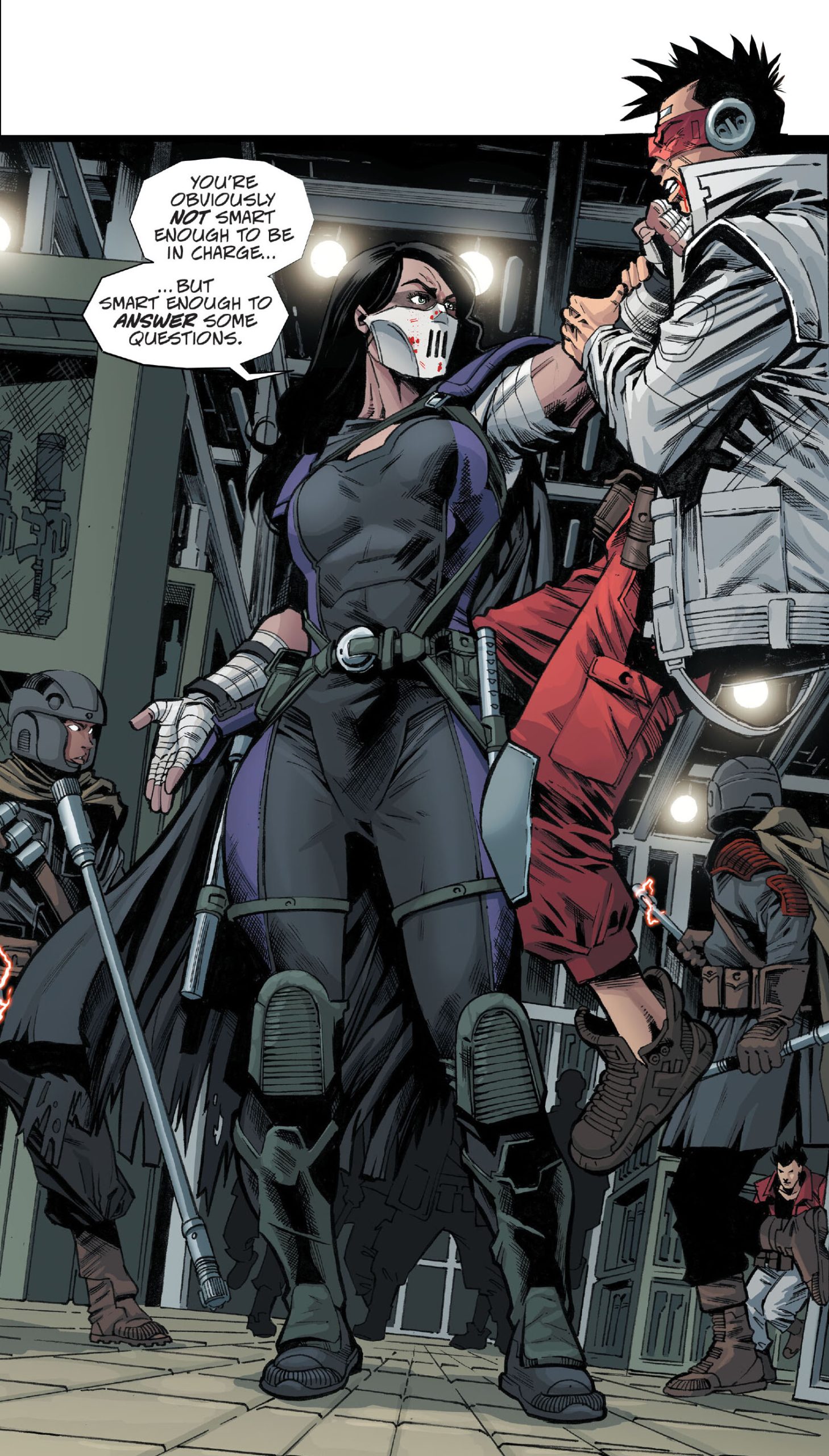 C’était la troisième attaque des Yorkville Warriors sur la base de la Résistance. Mais cette fois, Casey Marie Jones sentait une nette différence. Ils étaient des dizaines à s’amasser dans les couloirs, se briser comme les vagues sur les digues formées par les hommes du commandant Zaragoza. Ils étaient mieux armés. Mieux entraînés. Toujours plus nombreux. Dans la mêlée, la femme ordonnait aux soldats autour d’elle de laisser au moins un assaillant encore conscient. Elle saisissait un homme qui s’apprêtait à la frapper à la nuque et l’envoyait voler contre un mur. Il crachait du sang, mais pourrait parler, le moment venu. Hors de question de faire des morts, malgré les réticences de ses équipiers en armure. Son équipe était certainement ce qui se rapprochait le plus de personnes qui cherchaient à améliorer les choses dans cette ville en décadence. 15 années après la mort de Hiroto (The last ronin #5), le monde sombrait dans la folie. Les politiciens n’étaient plus que des criminels. Plus personne n’avait confiance dans la police. Les quelques bons policiers croulaient sous un travail ingrat. Dans ce tumulte, la Résistance, bâtie pour veiller à la paix, ne pouvait plus que se défendre face à la déferlante de violence. Ils n’étaient plus assez nombreux. Ou l’ennemi l’était de trop ?