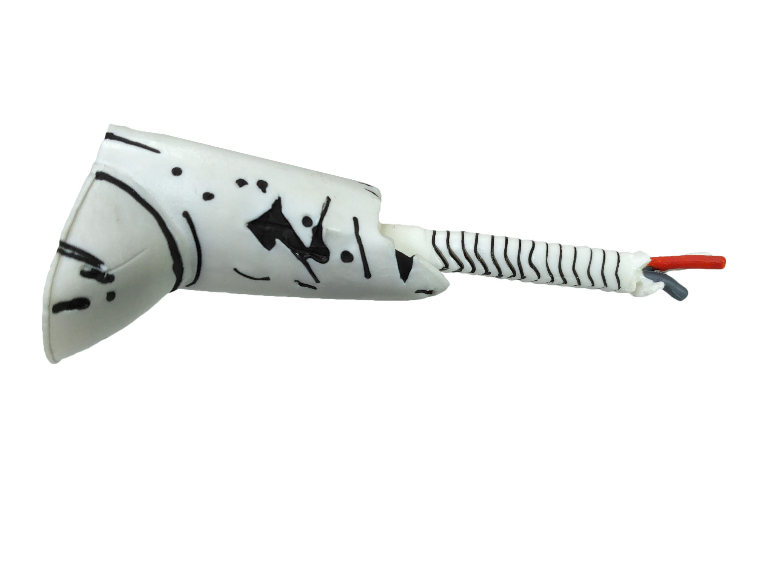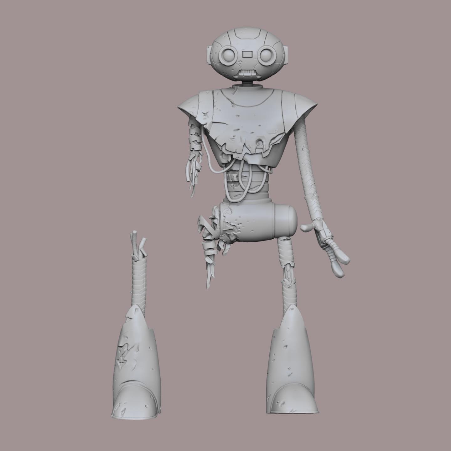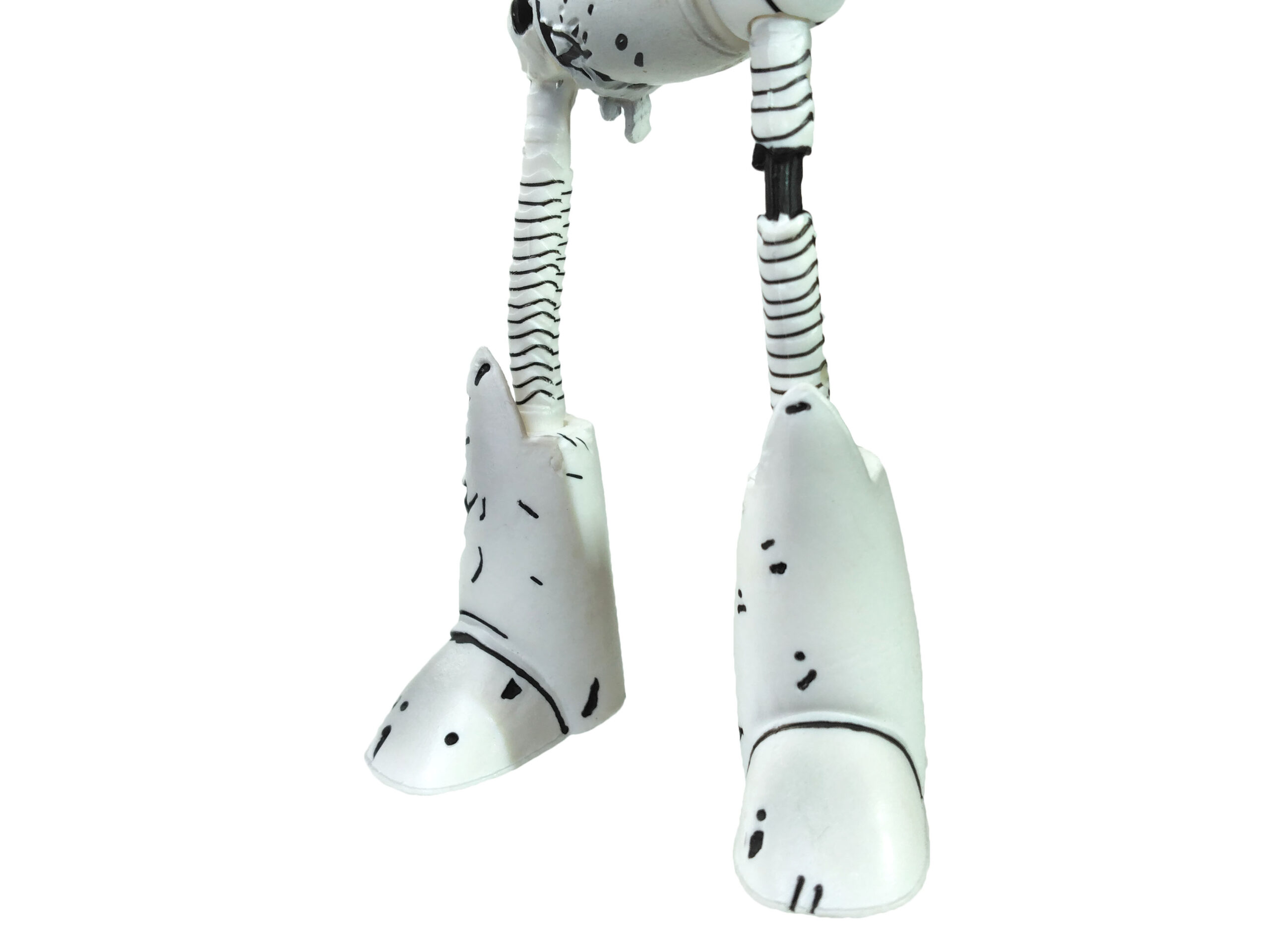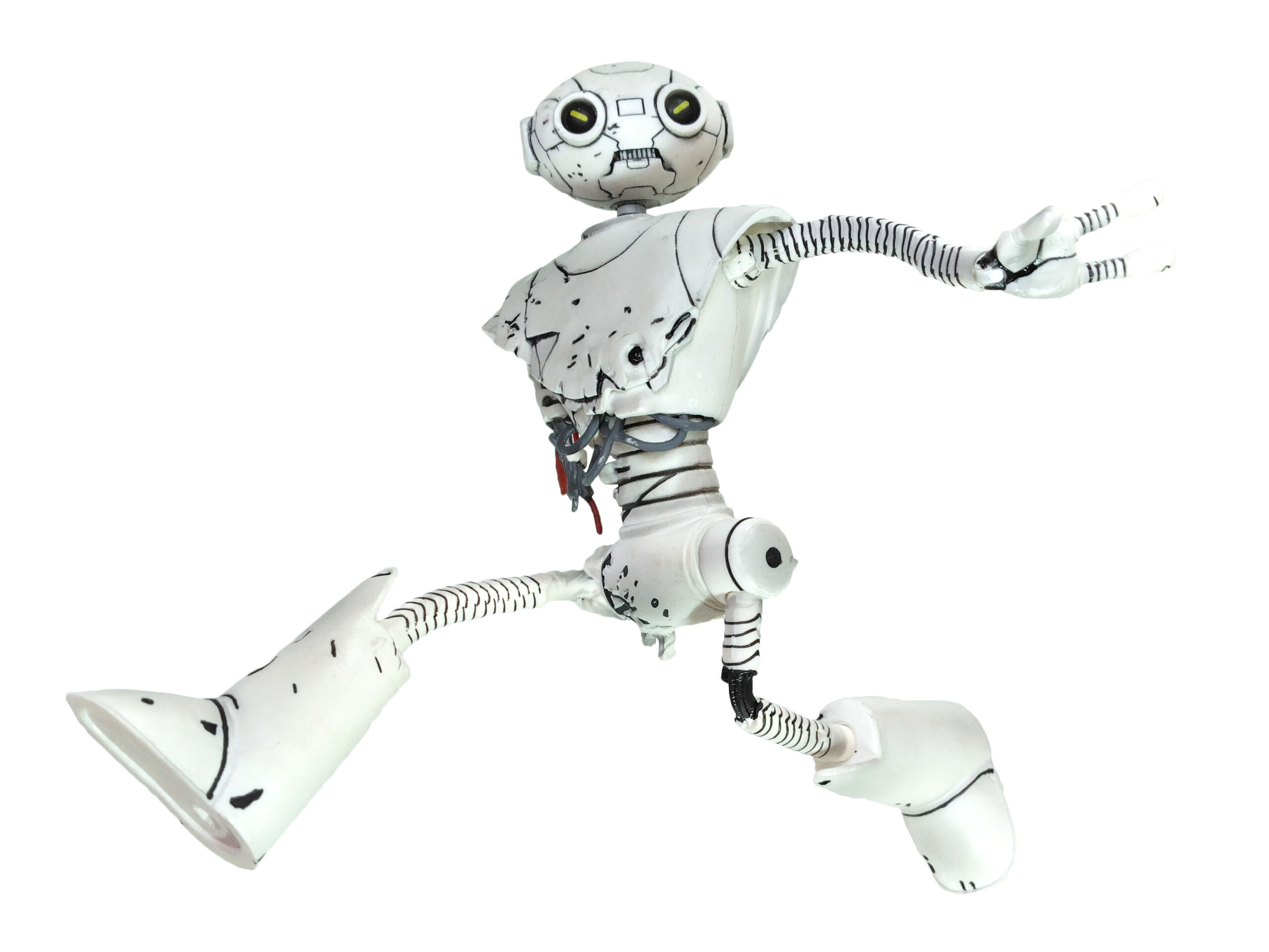 La peinture de cette figurine est relativement simple. Entièrement peinte de blanc, quelques détails parsèment le personnage. De très nombreux traits noirs permettent de mettre en valeur les différents dégâts subits par le robot.