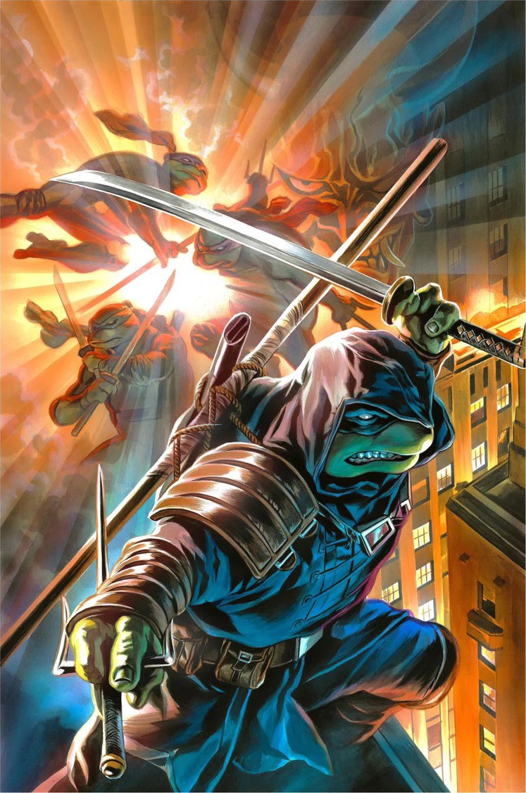 - L’une des couvertures de ce numéro a été réalisée par Ciro Nieli, producteur du dessin animé de 2012, qui a déjà proposé de nombreux visuels pour les Tortues Ninja. Sa couverture est légèrement décalée, présentant le dernier ronin dans un décor européen. Il explique « Le concept est qu’à travers son voyage en Europe, Mikey va rencontrer des humains changés en chauve-souris en Roumanie, contrôlés par un conte dans son château » (source).
