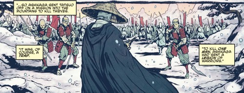 Ils avaient alors un mois pour monter un plan d’attaque. Le temps passa et l’armée était prête à marcher sur son dirigeant. Tatsuo fut pris par surprise dans le château de Kitsune avant même de déguster la potion qui lui avait été préparée. Le vieil homme saisit son sabre prêt à se battre. Face à lui se tenait Oroku Maji. Masato et les autres hommes du Foot Clan retenaient la renarde, laissant les deux guerriers entrer dans l’histoire du clan. Un combat au sabre s’engagea.