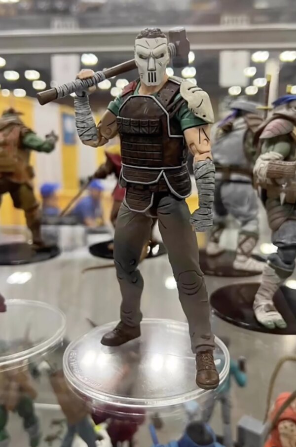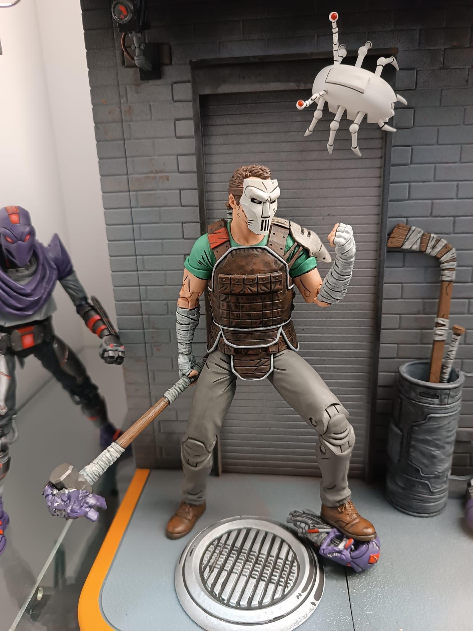 La figurine de Casey Jones a été dévoilée à la Comic Con de San Diego en juillet 2023. Nous retrouvons tous les détails vus dans The last ronin #3. La masse du justicier peut également être combinée avec le crâne défoncé accompagnant le Foot bot.