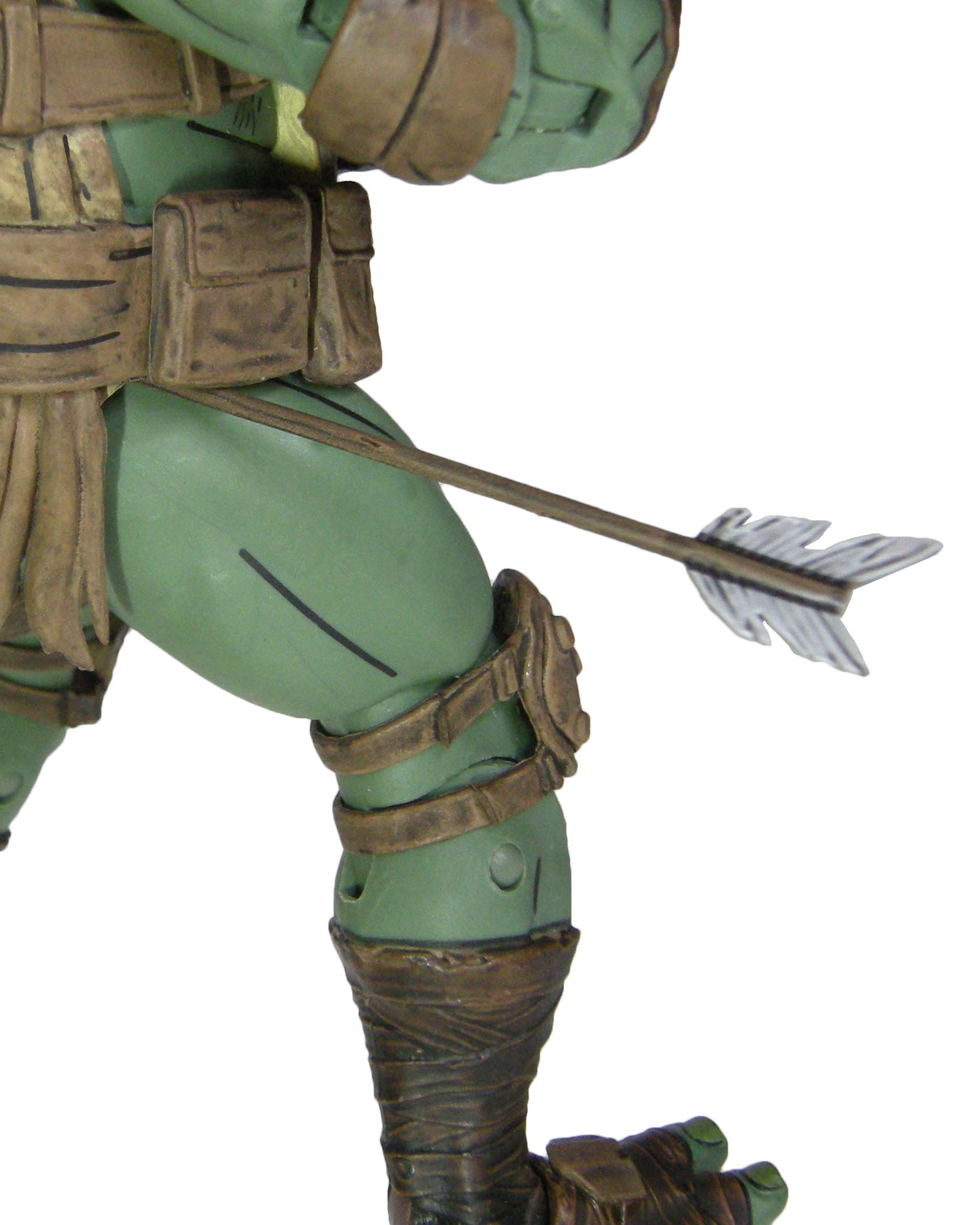 Enfin, la tortue dispose d’un dernier accessoire, une flèche. Celle-ci provient du Foot Clan. Cette version de la tortue ne présente aucune blessure, il faudra pour cela attendre la version First to fall, présentant un Raphael très blessé. Mais vous pouvez toujours glisser la flèche dans un des nombreux reliefs du personnage, comme la carapace, les lanières, le plastron… Il y a vraiment de quoi faire !